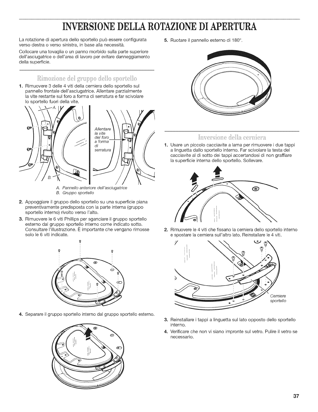 INVERSIONE DELLA ROTAZIONE DI APERTURA ............... 37