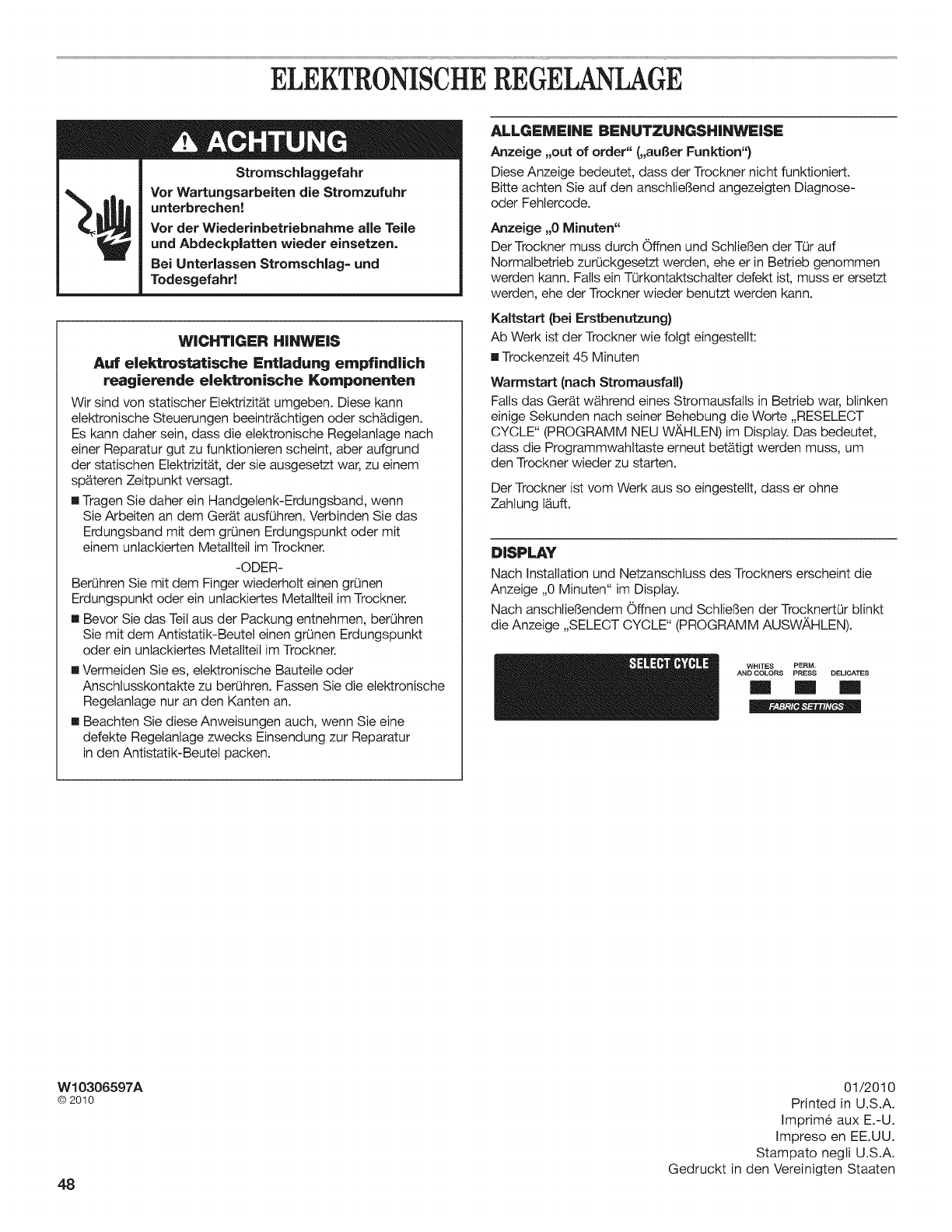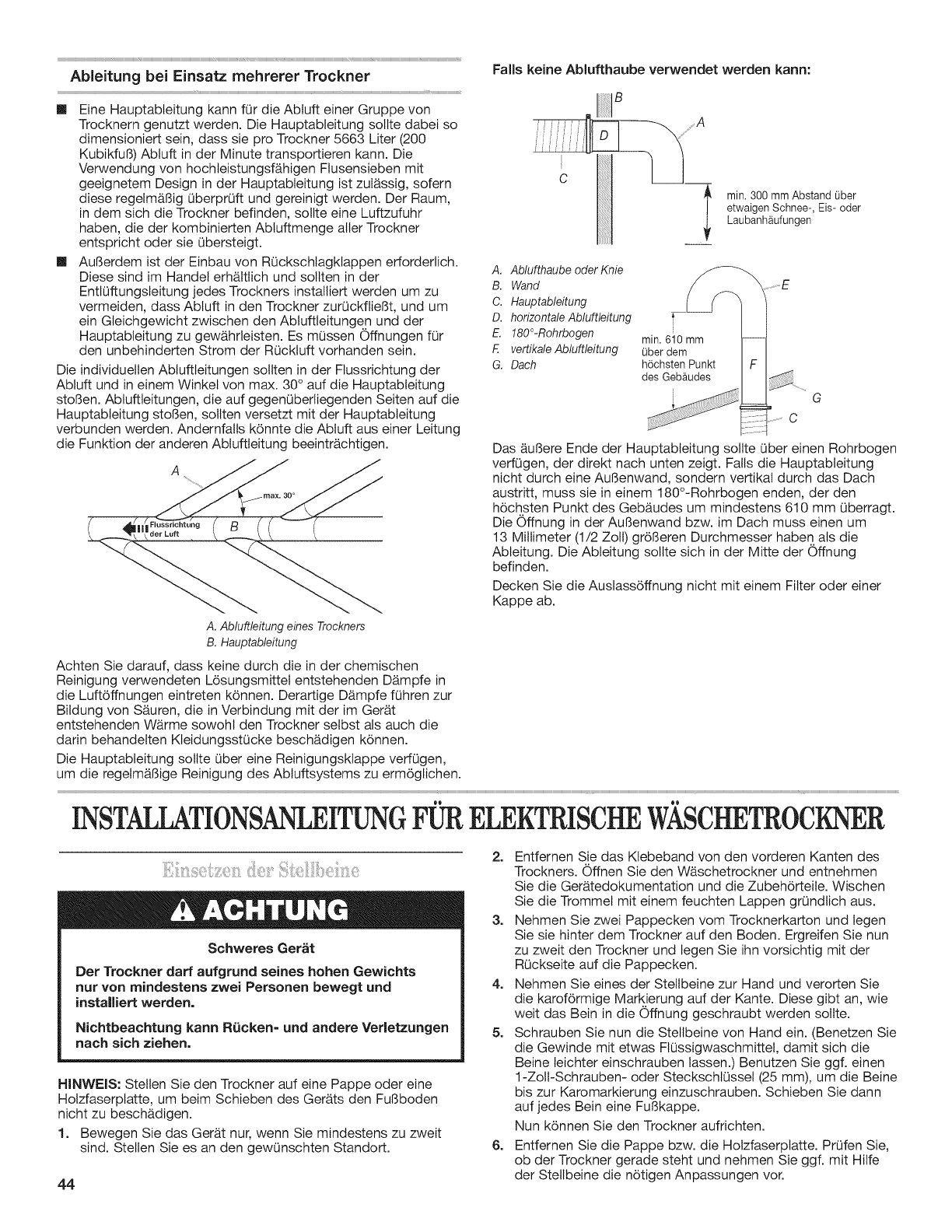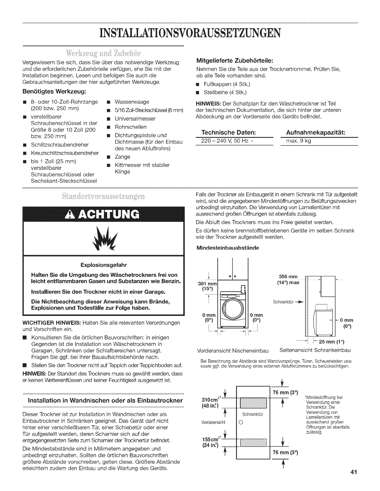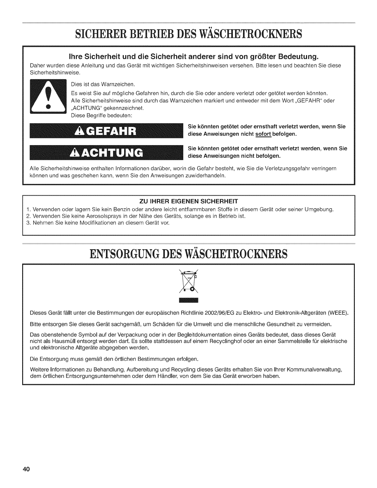 SICHERER BETRIEB DES W._SCHETROCKNERS ................ 40
