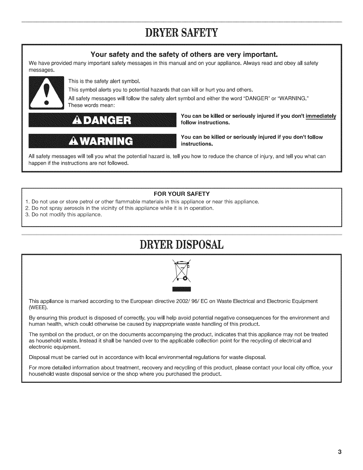 DRYER SAFETY ............................................................................ 3