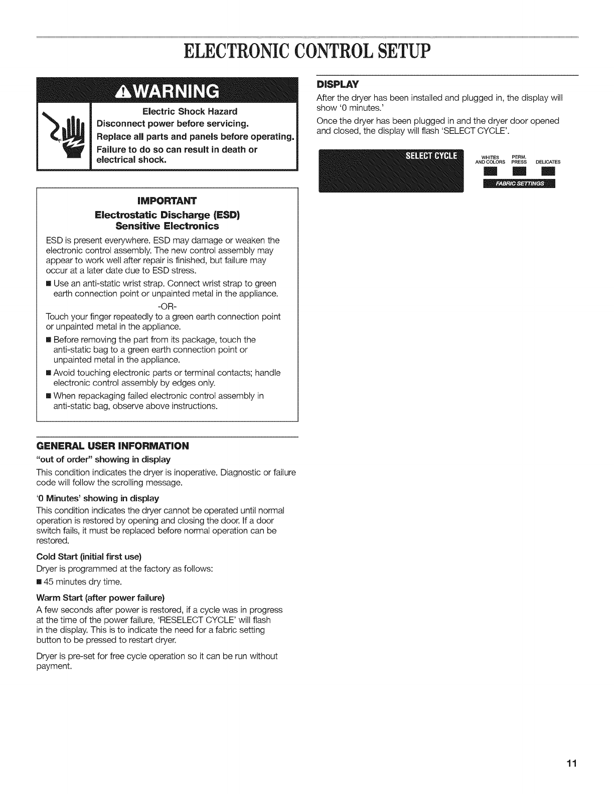ELECTRONIC CONTROL SETUP .......................................... 11
