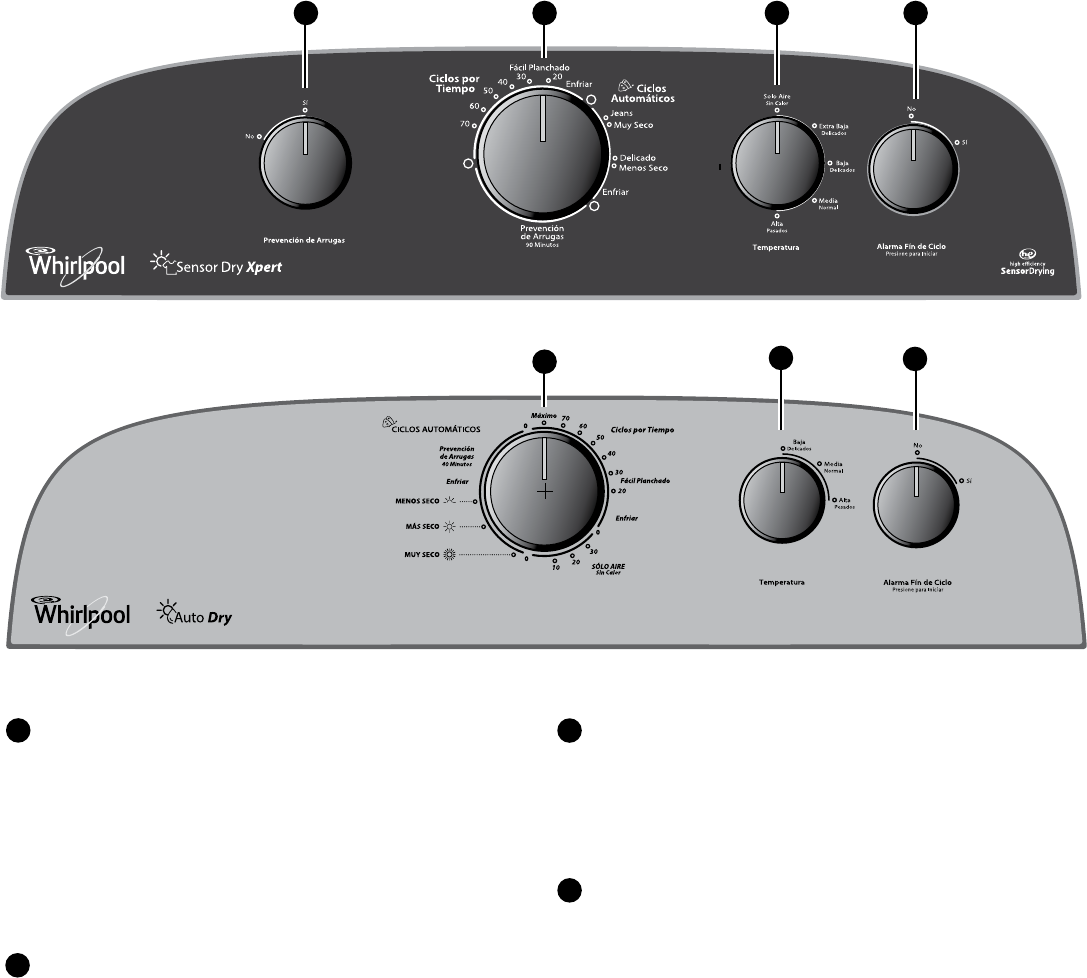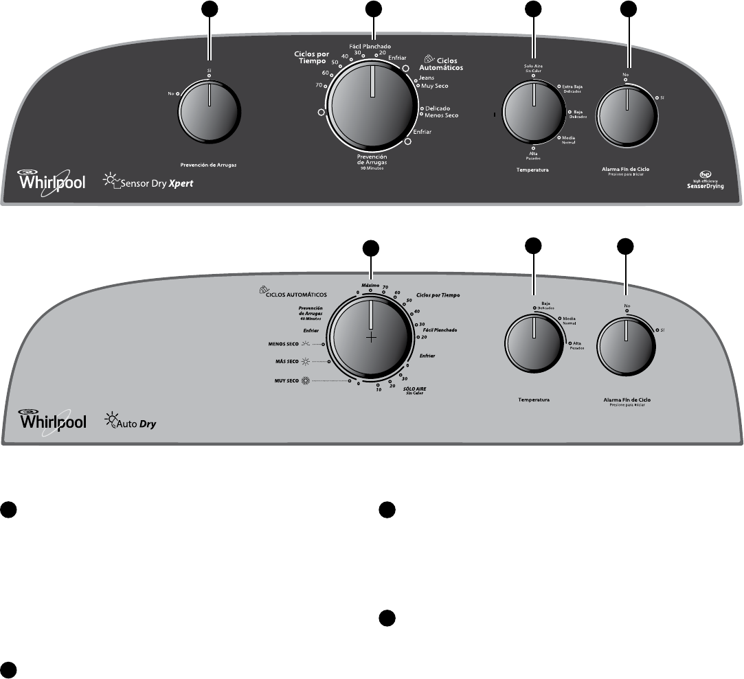 Utilice los Ciclos Automáticos para obtener el mayor ahorro de energía y un mejor cuidado de las telas con la secadora. Durante