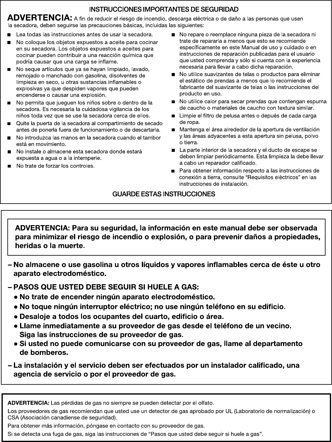 SEGURIDAD DE LA SECADORA .............................................. 2