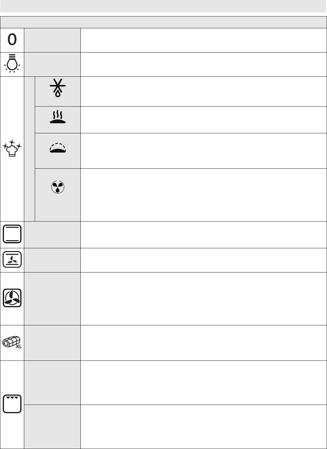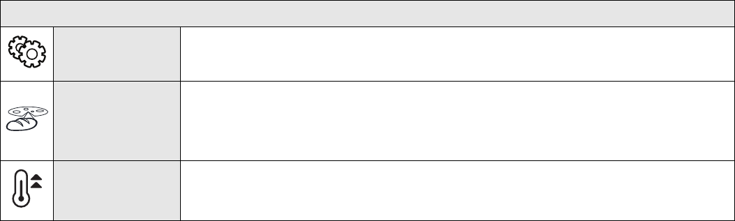 The cooking table advises the ideal function and temperature to ensure the best results with all recipes. If