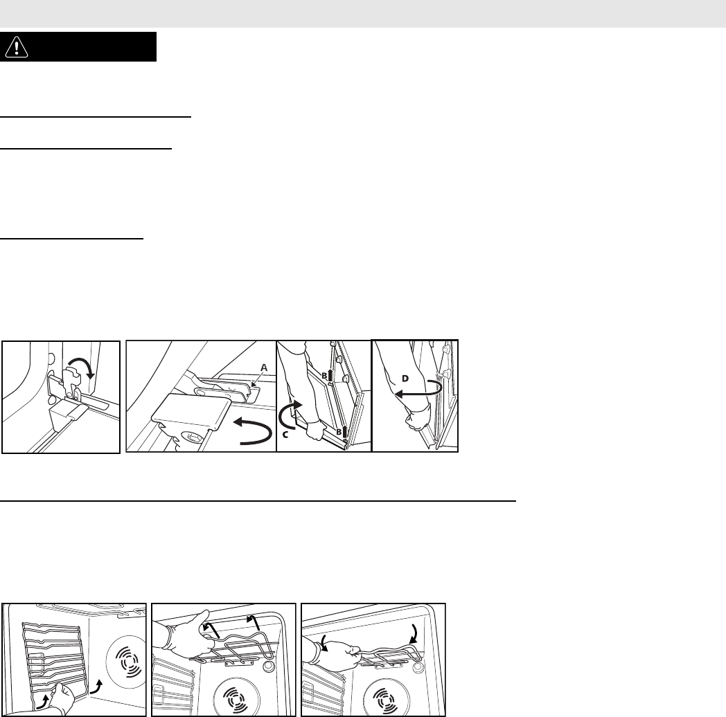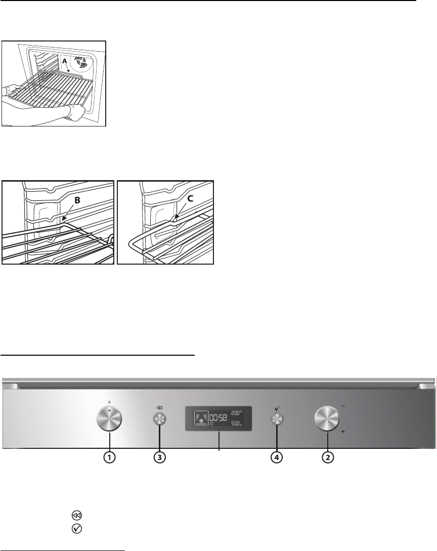wall of the oven and resting it on the respective support. To prevent smoke and to collect cooking juices,