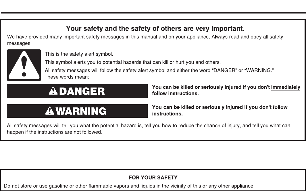Do not store or use gasoline or other ammable vapors and liquids in the vicinity of this