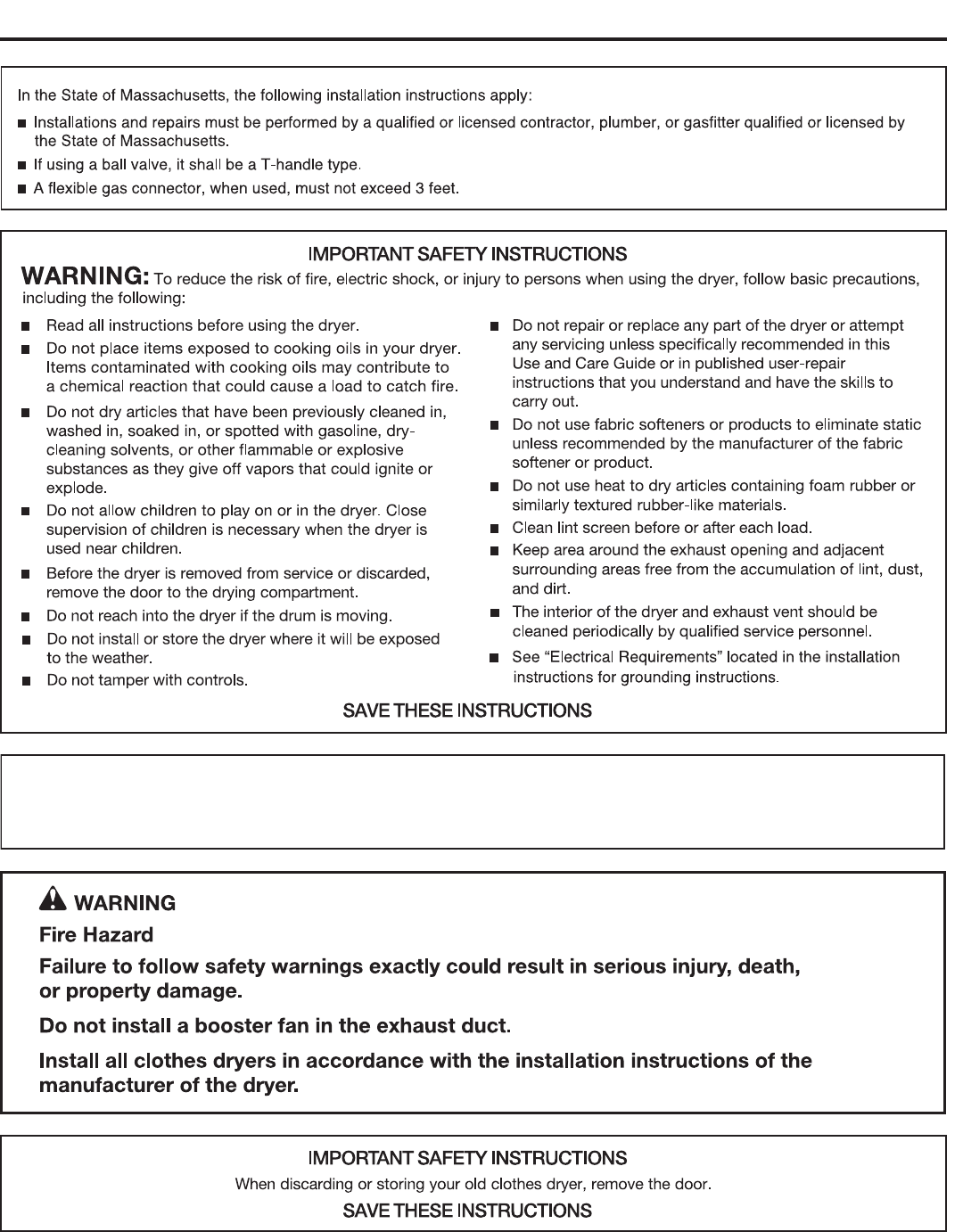 INSTALLATION INSTRUCTIONS – GAS DRYER .................. 18