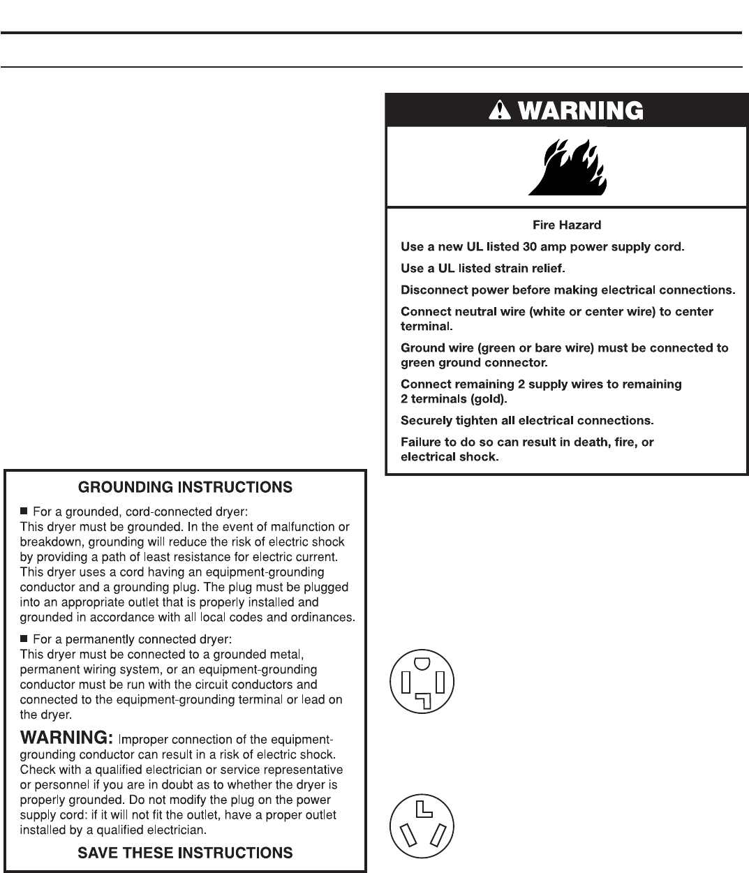INSTALLATION INSTRUCTIONS – ELECTRIC DRYER ....... 19