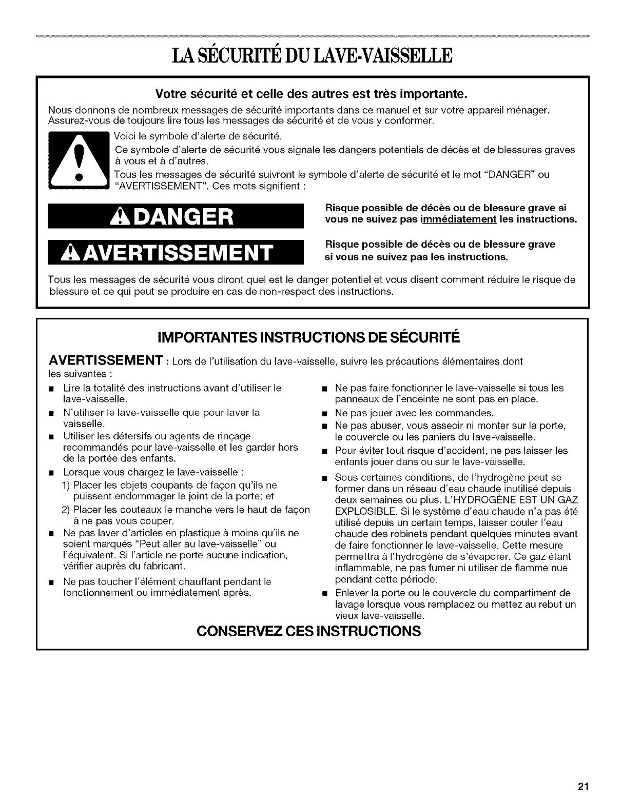 LA S¢CURIT¢: DU LAVE-VAISSELLE ......................................... 21