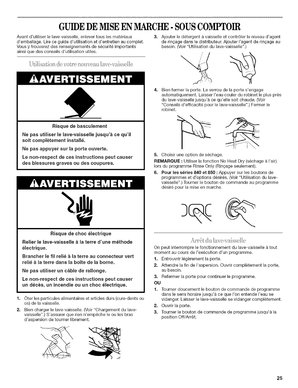 GUIDE DE MISE EN MARCHE -SOUS COMPTOIR ................. 25