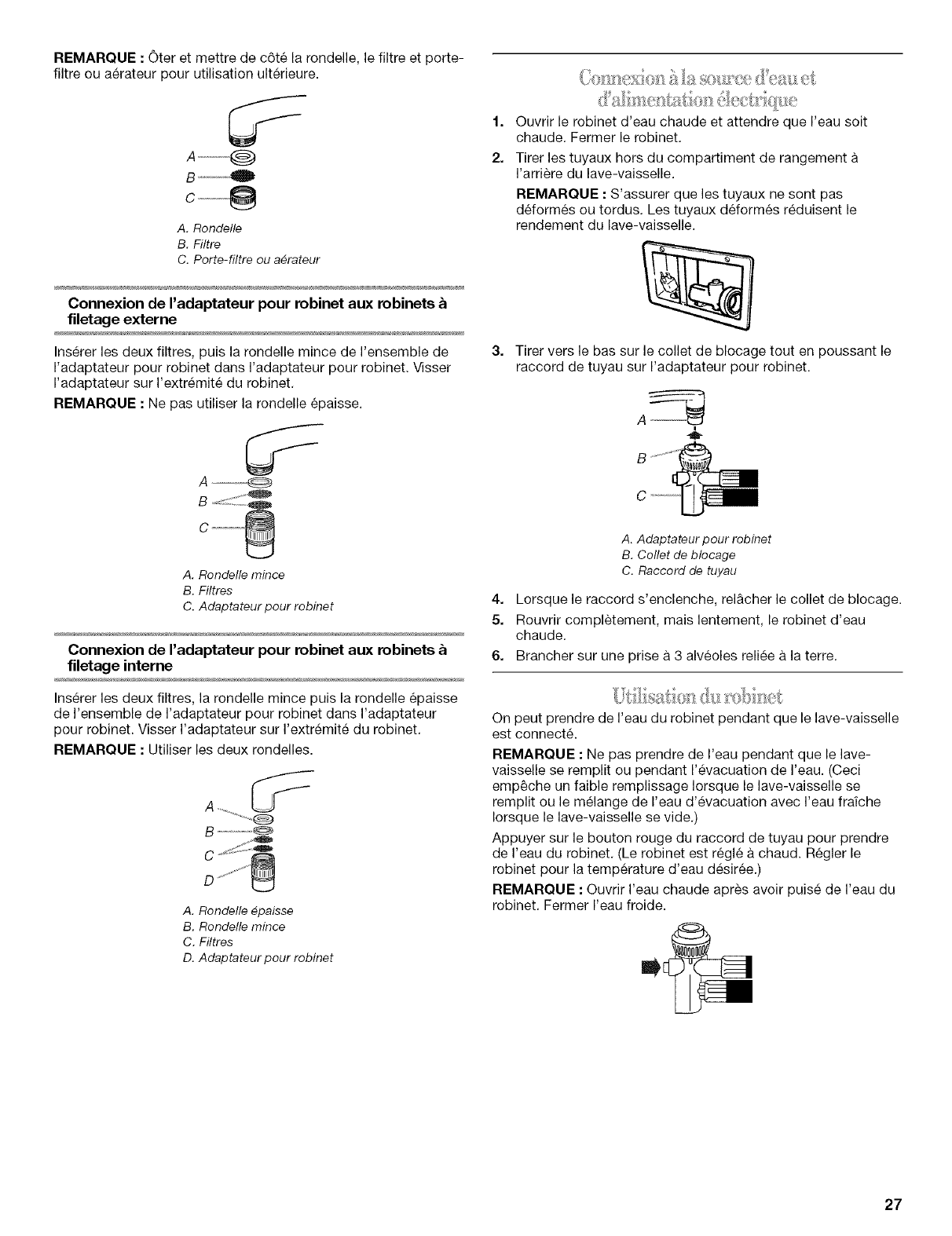 Connexion a la source d'eau et d'alimentation electrique ........ 27