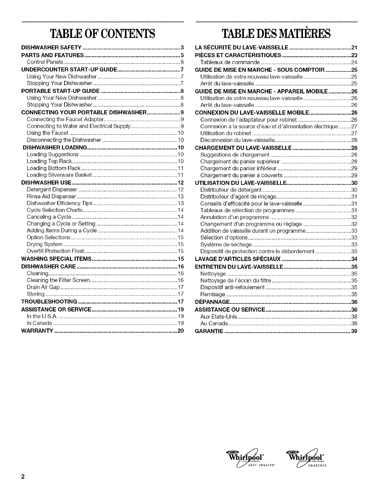 Tous droits r_serv_s, ® Marque d@os_e/TM Marque de commerce de Whirlpool, U.S,A. Emploi licencie par Whirlpool Canada Inc. au Canada