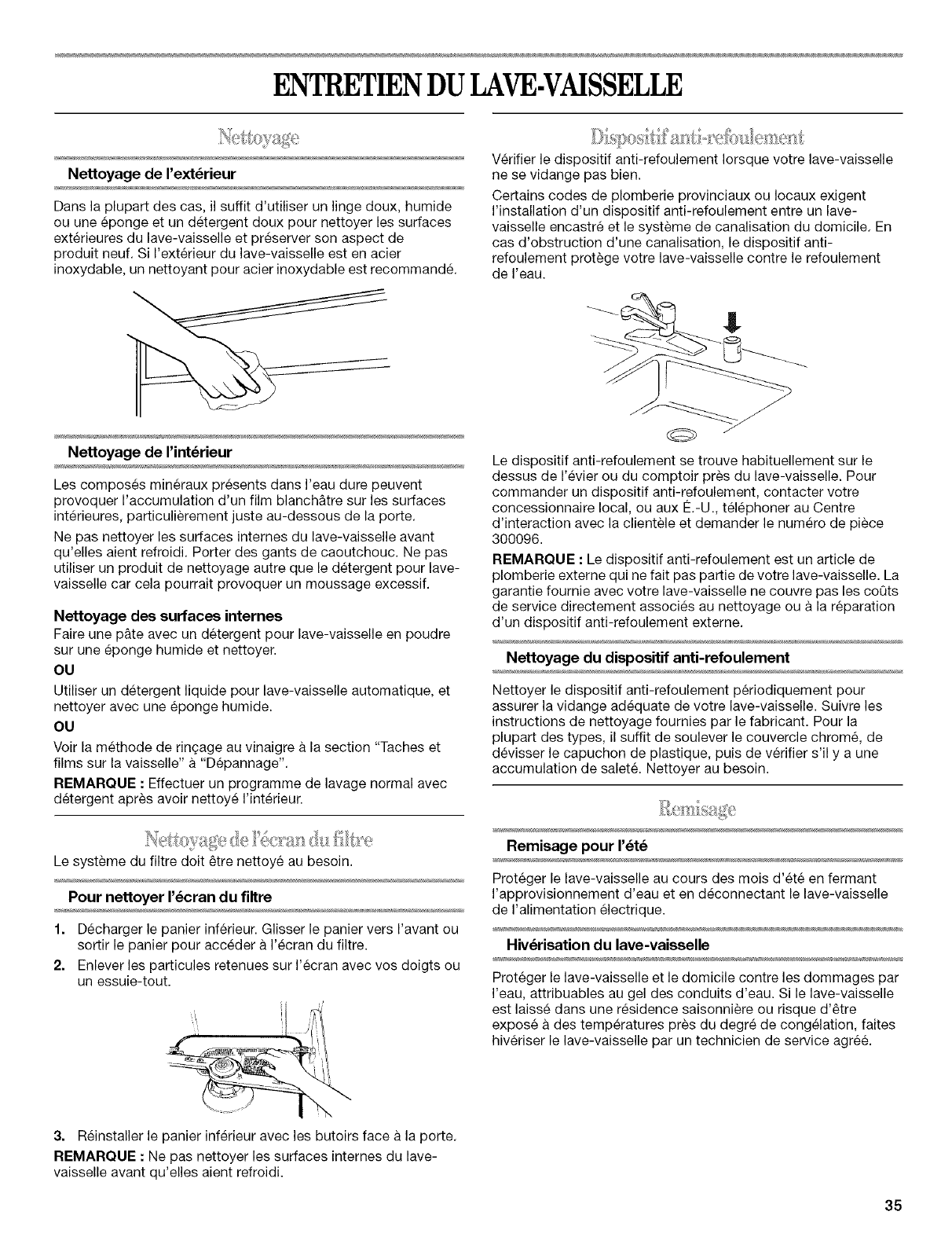 Nettoyage de I'ecran du filtre ..................................................... 35