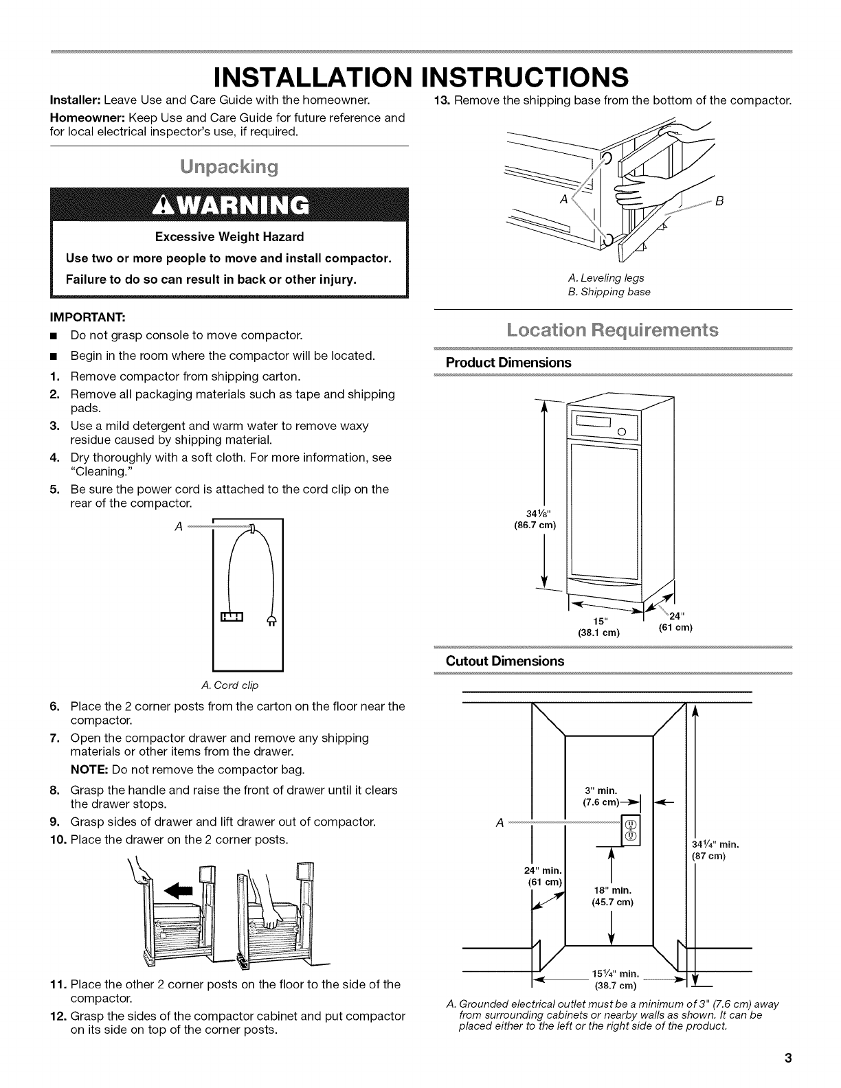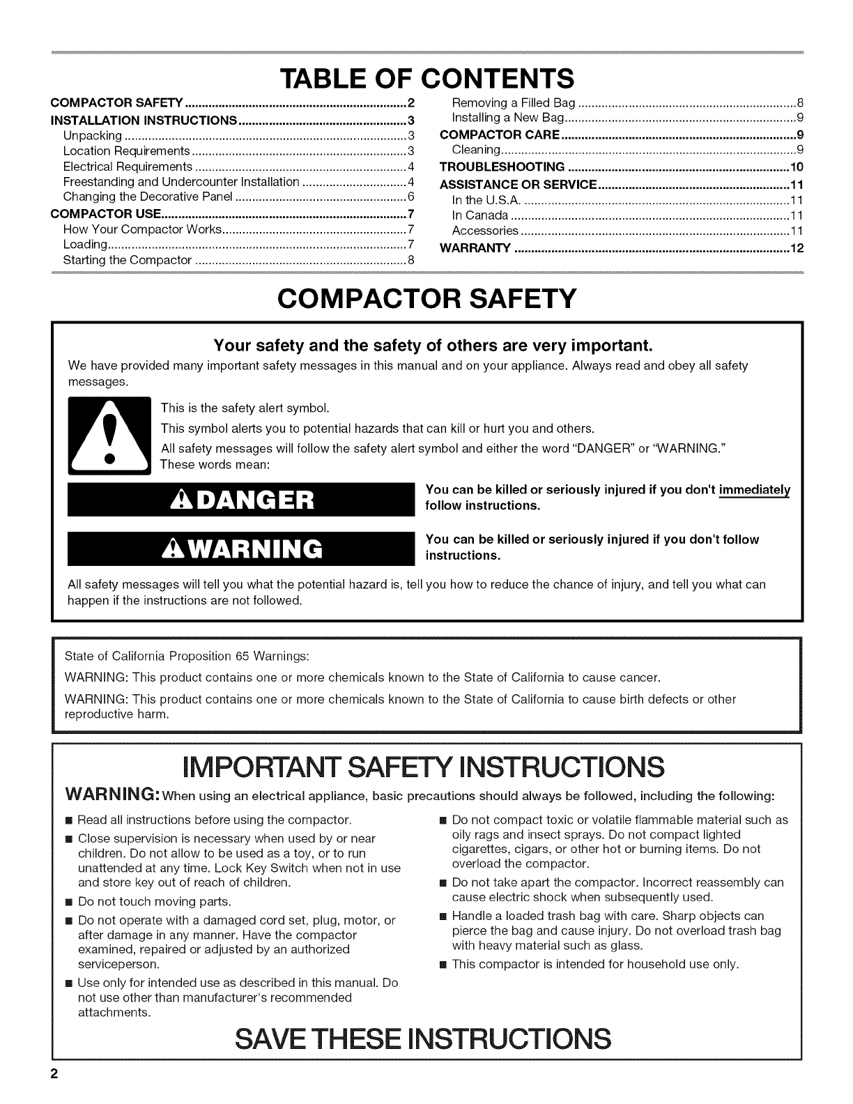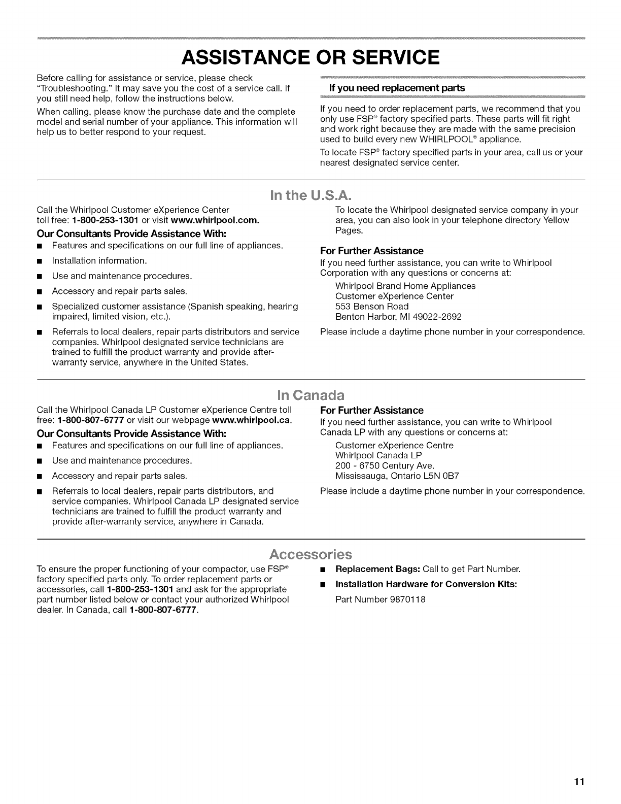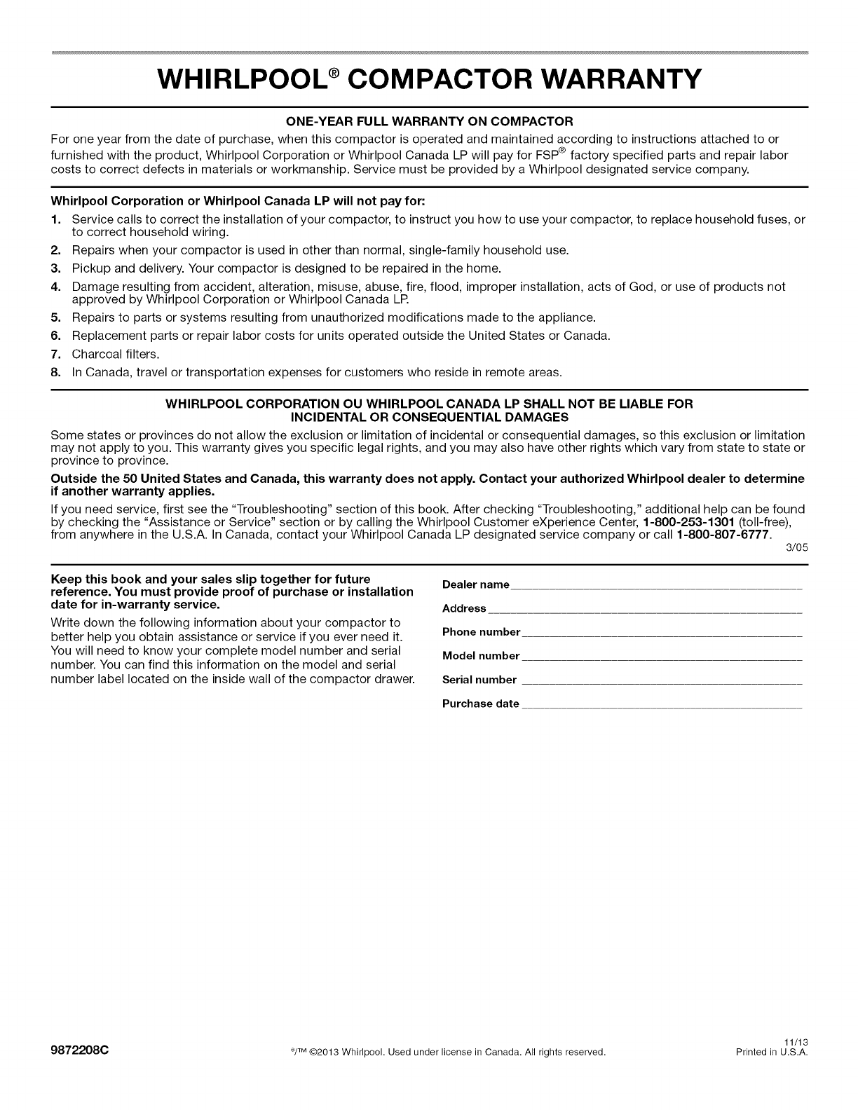 Whirlpool GC900QPPB6 1512363L User Manual TRASH COMPACTOR Manuals And Guides