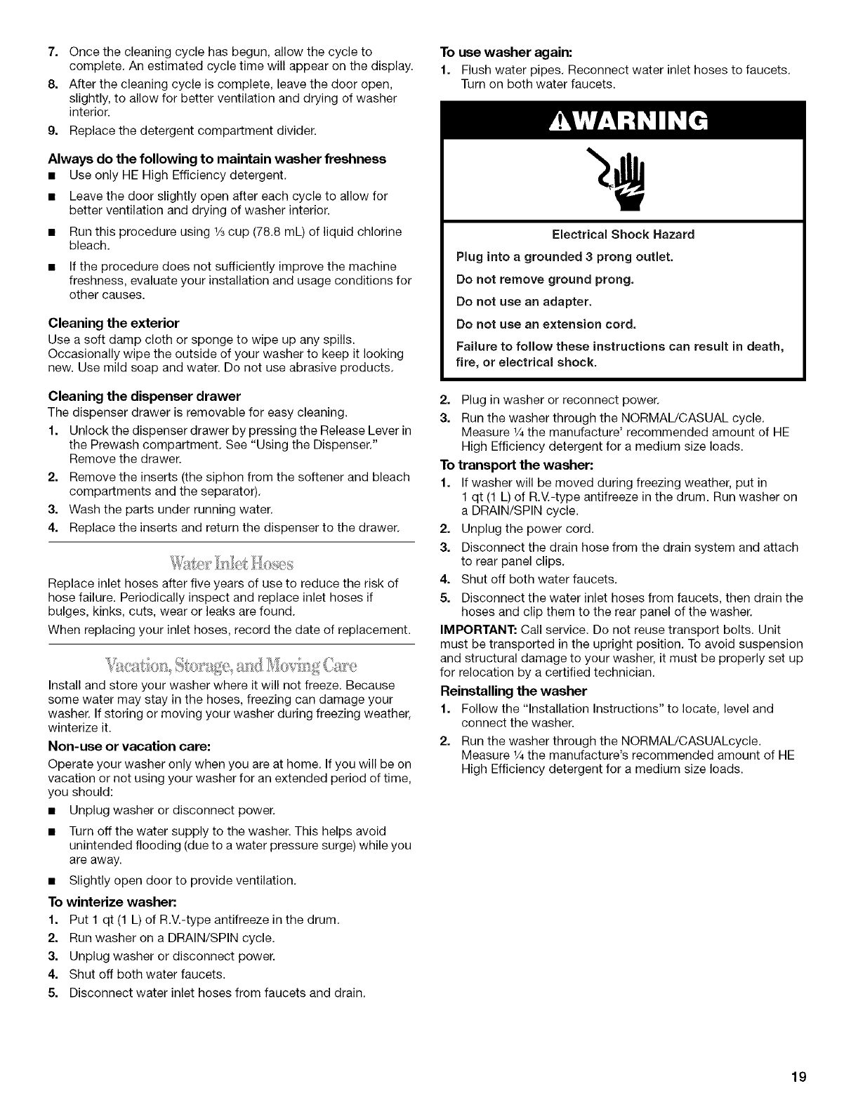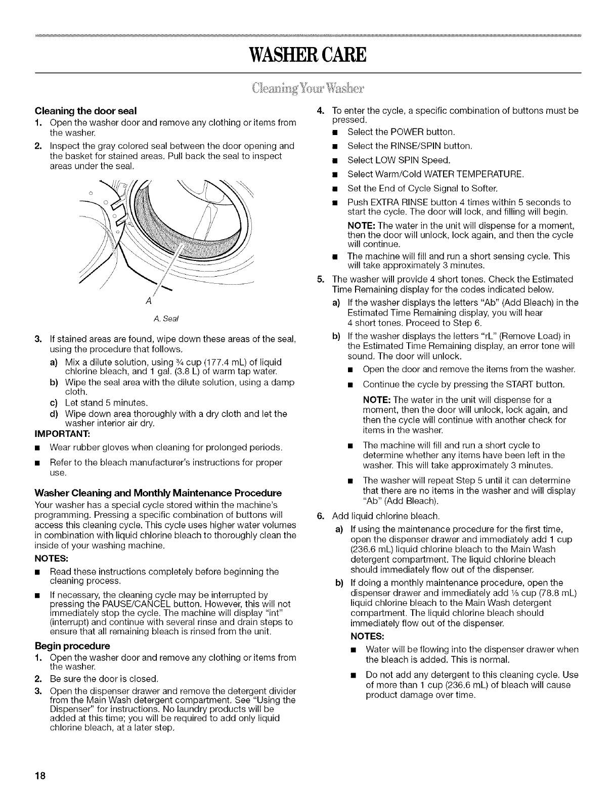 WASHER CARE ............................................................................ 18