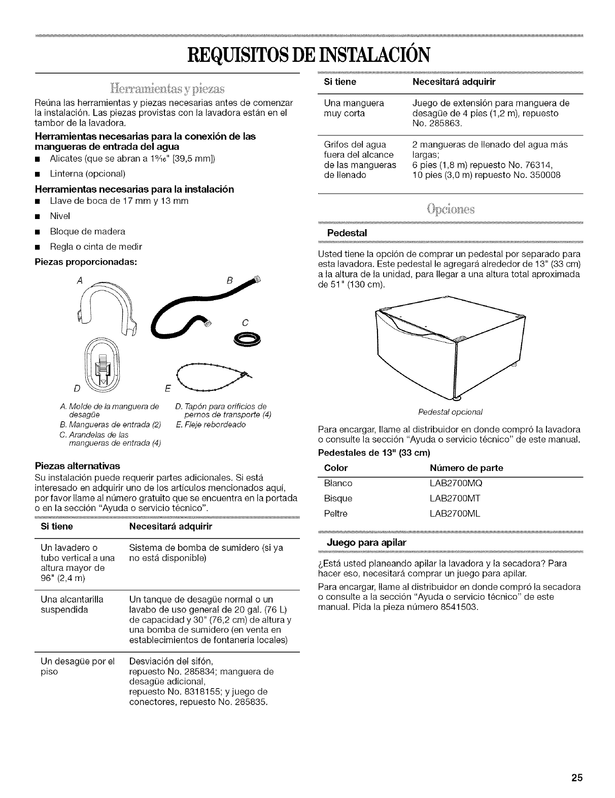 Herramientas y piezas ................................................................ 25