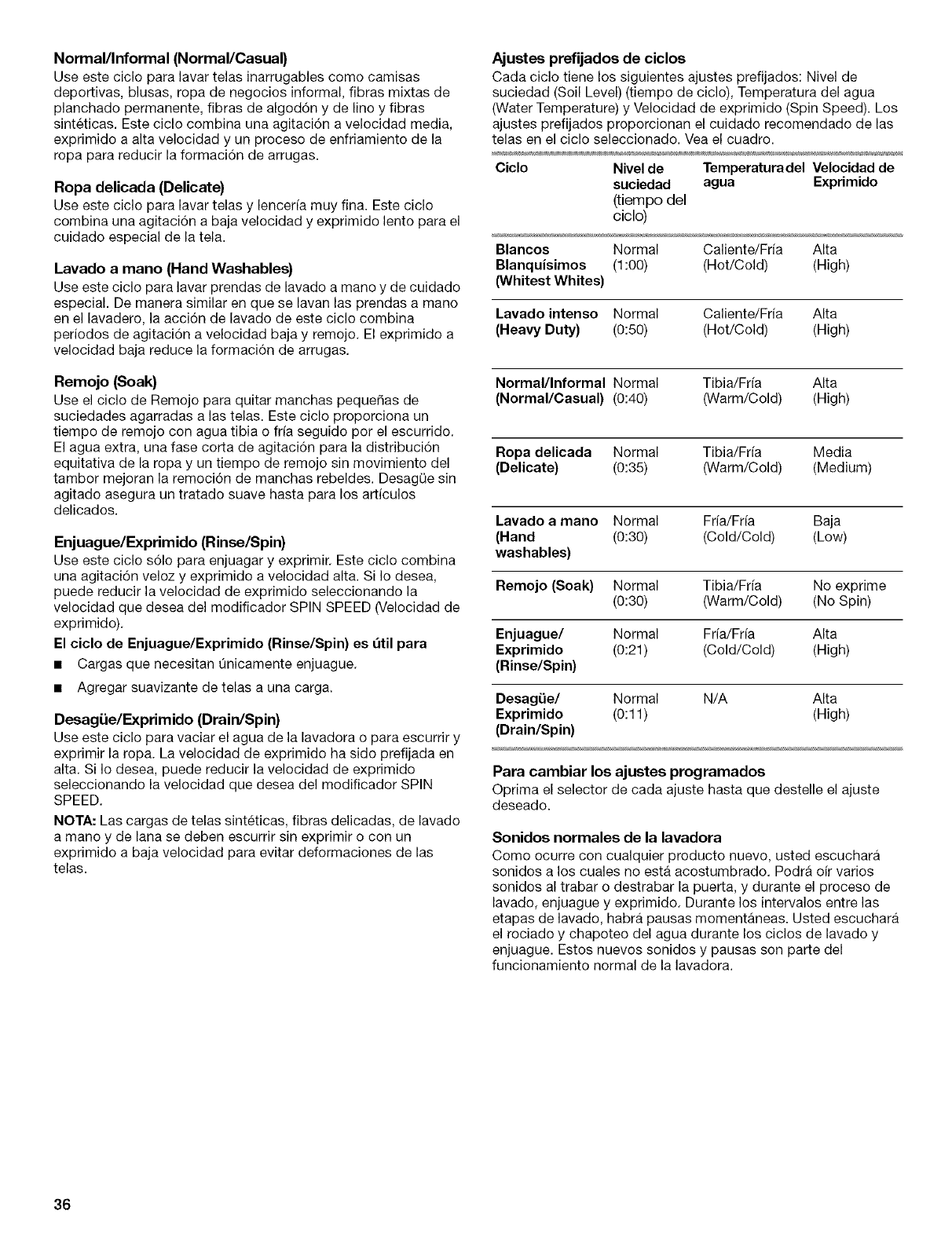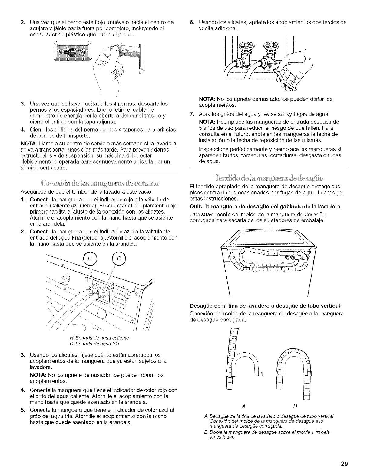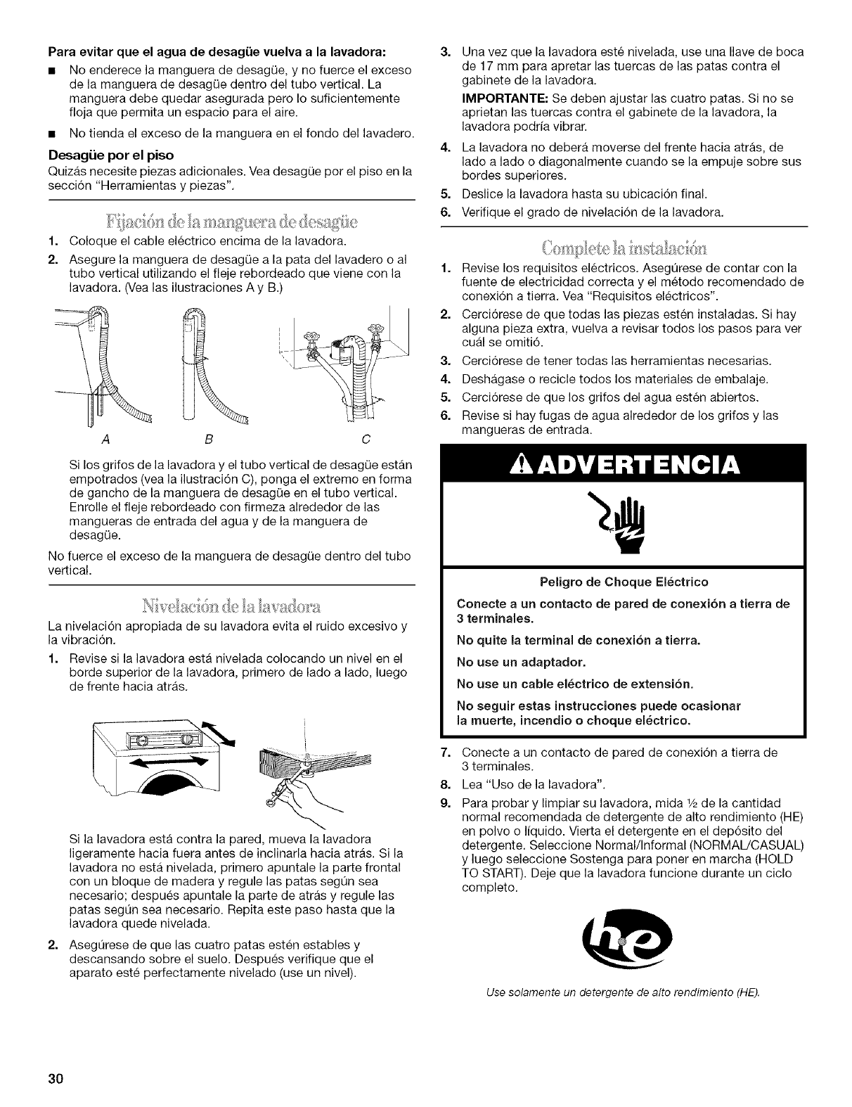 Nivelaci6n de la lavadora ........................................................... 30