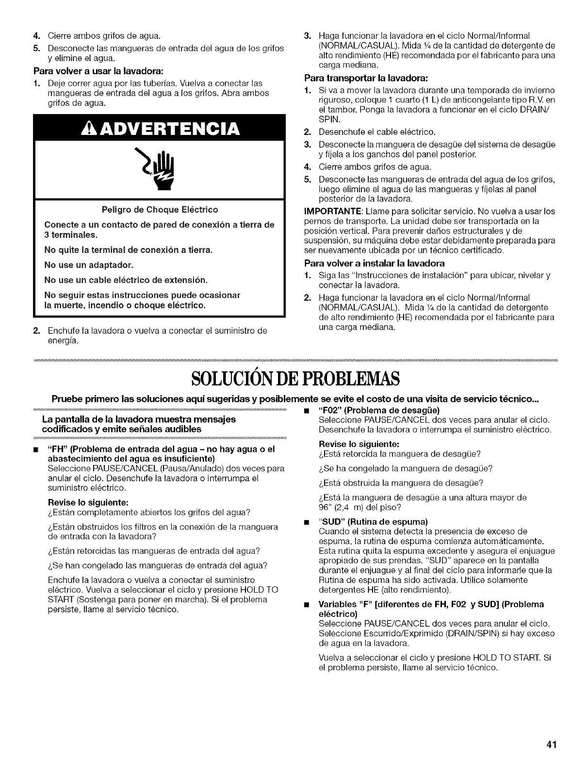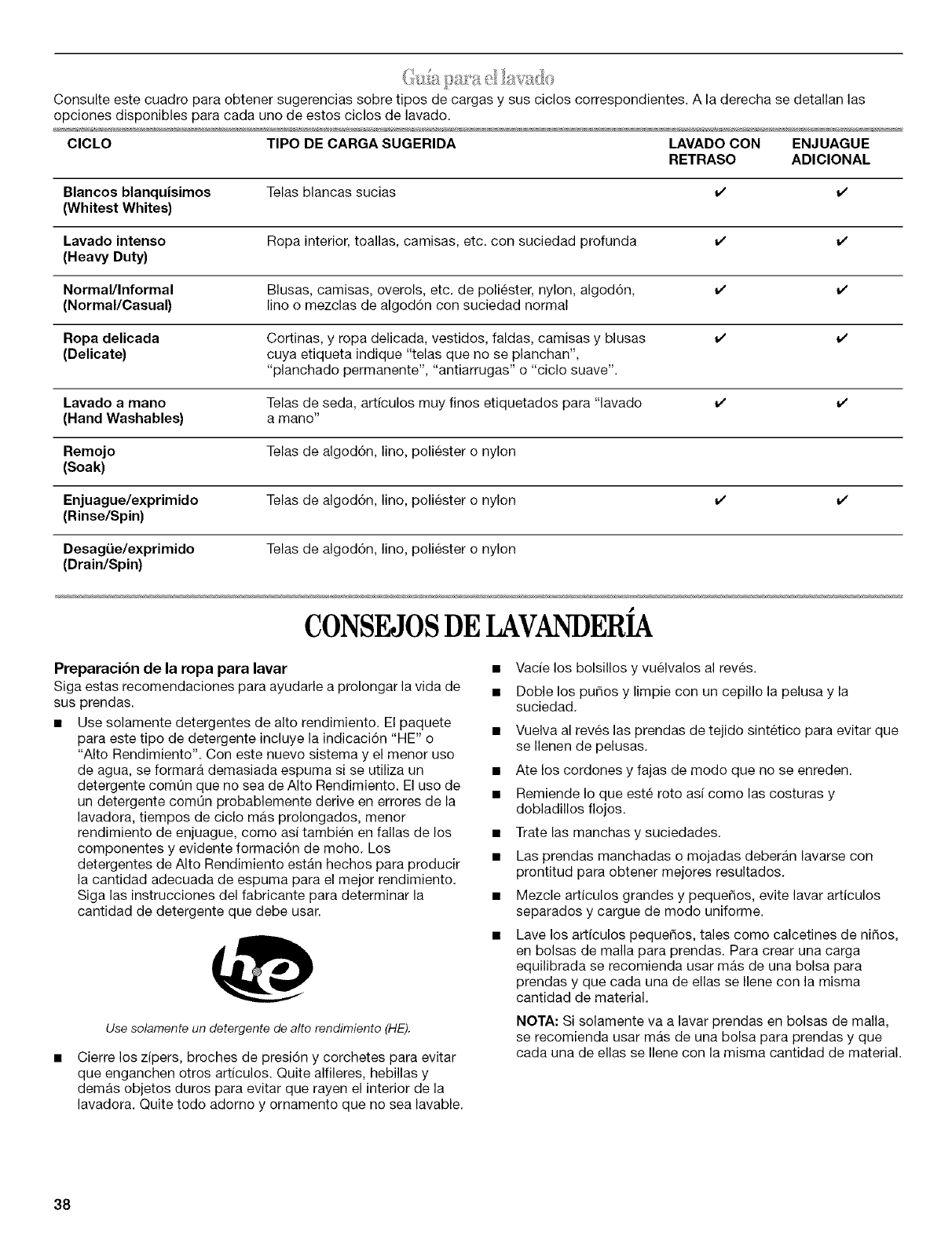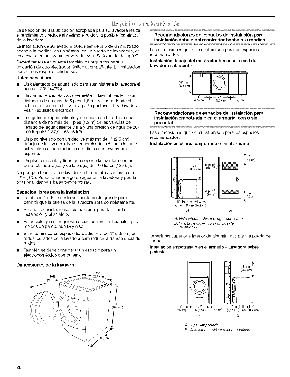 Nivelaci6n de la lavadora ........................................................... 30