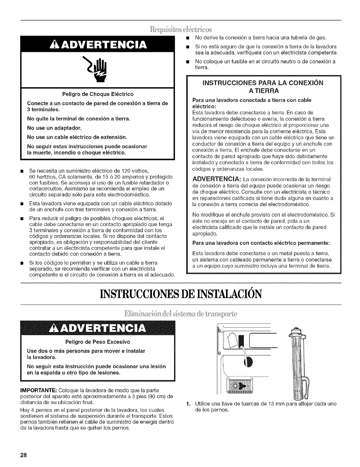 Requisitos electricos .................................................................. 28