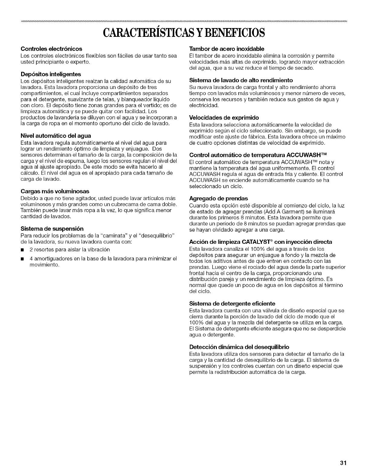 CARACTER|STICAS Y BENEFICIOS .......................................... 31