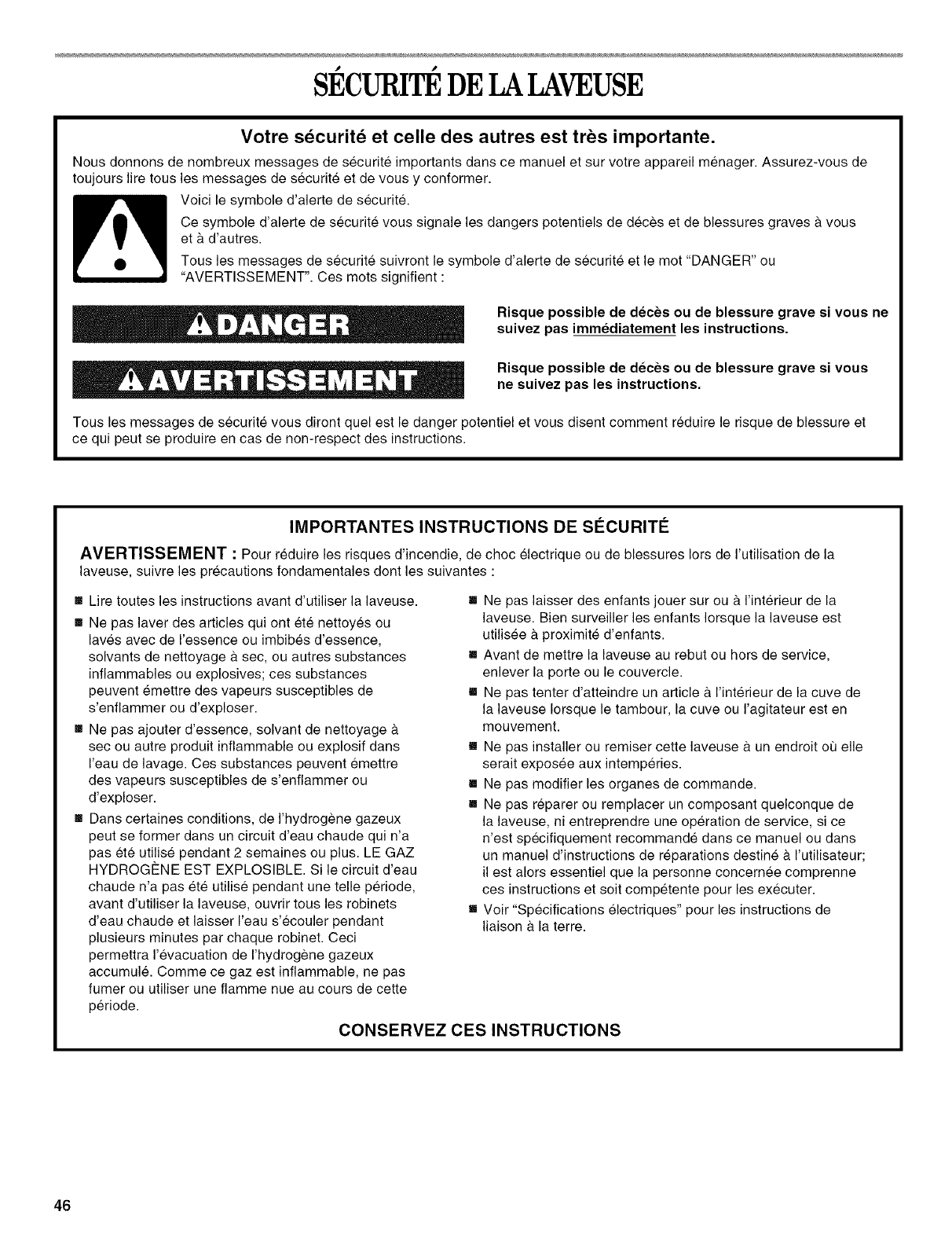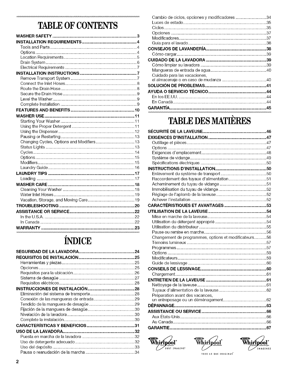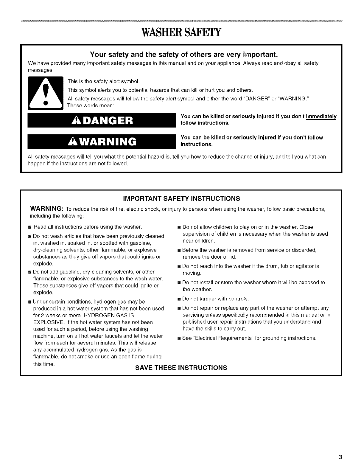 WASHER SAFETY .......................................................................... 3