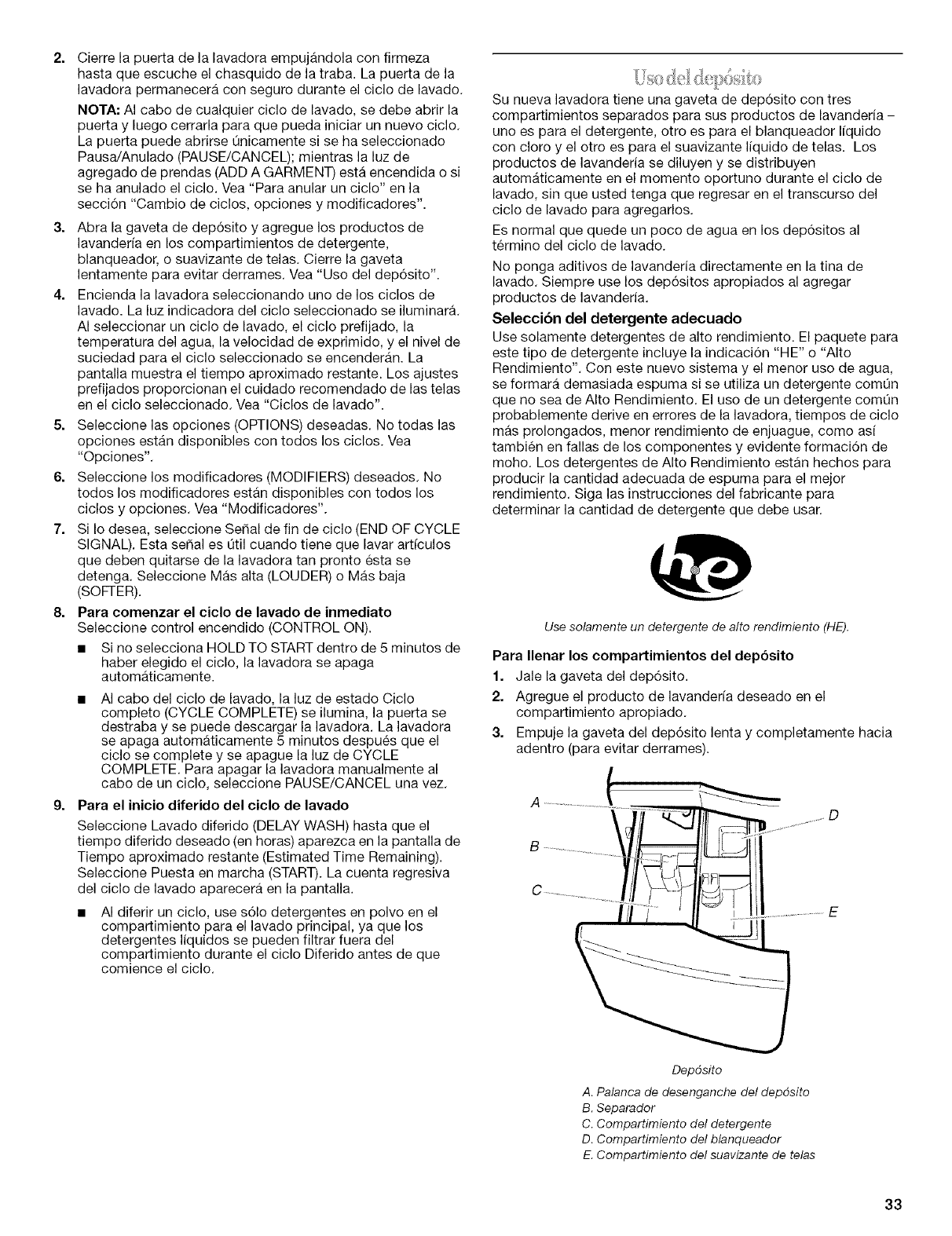 USO DE LA LAVADORA ............................................................... 32