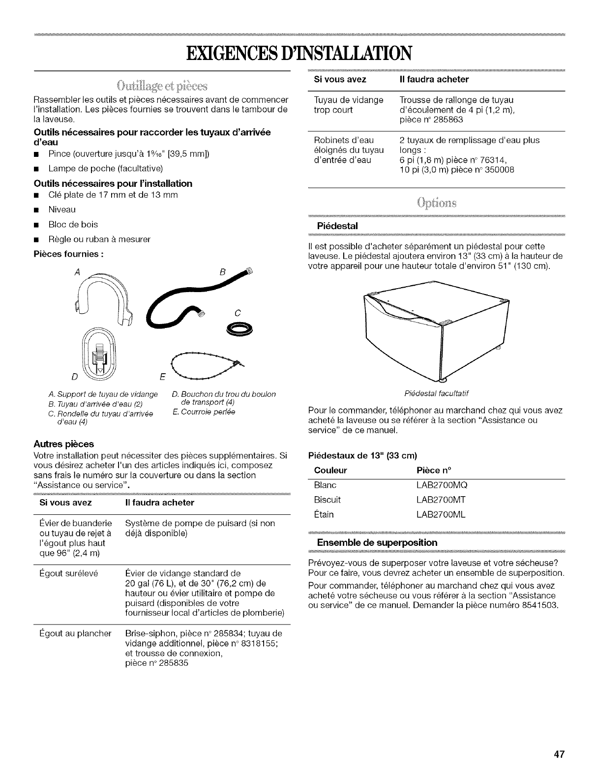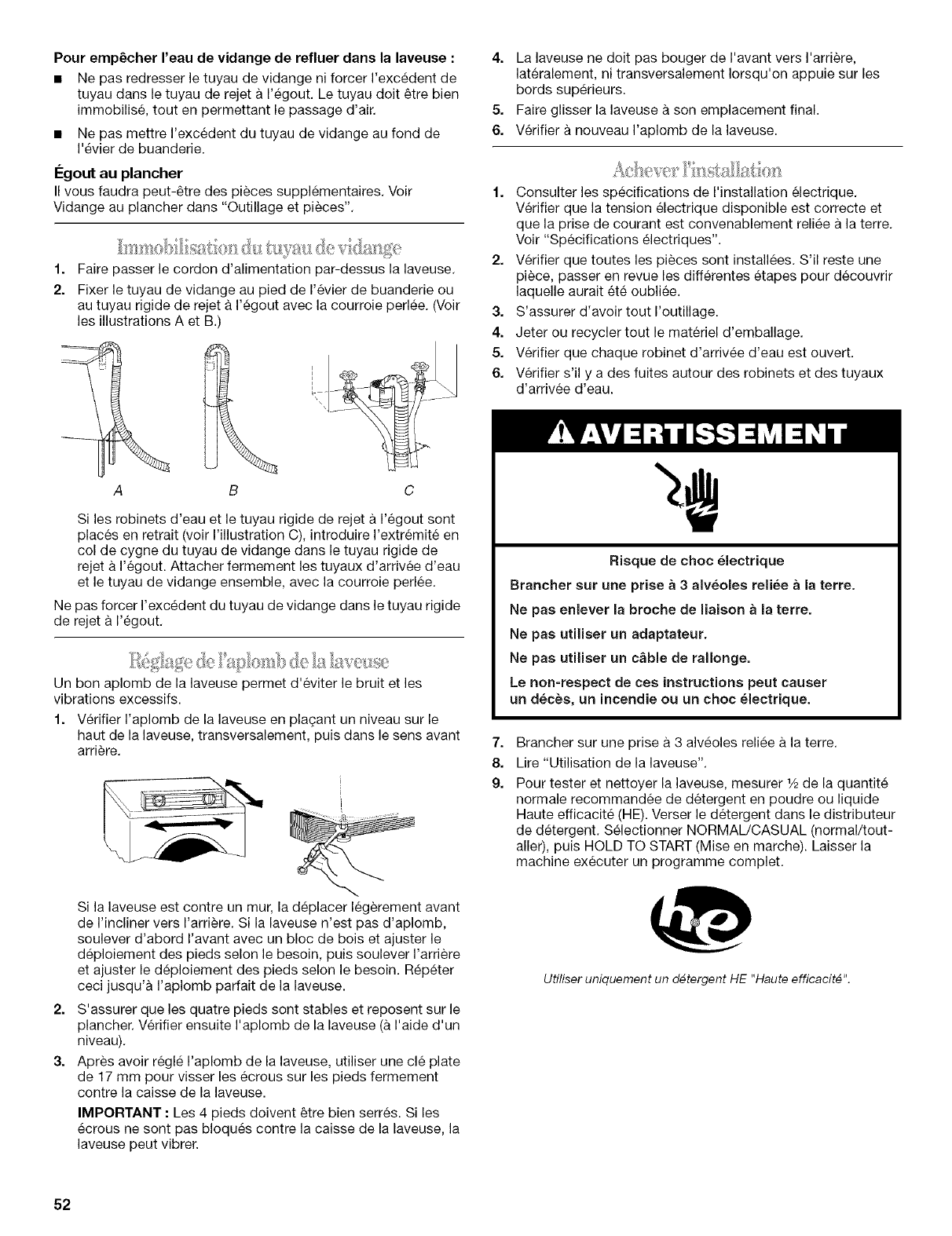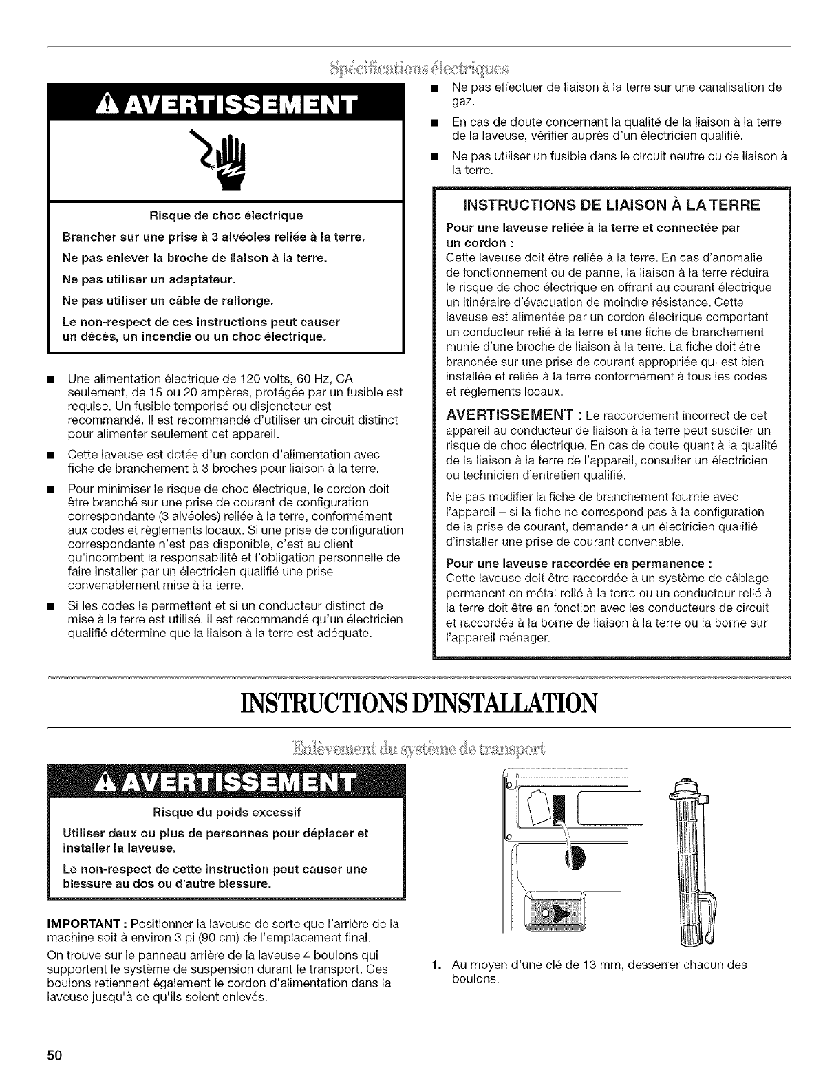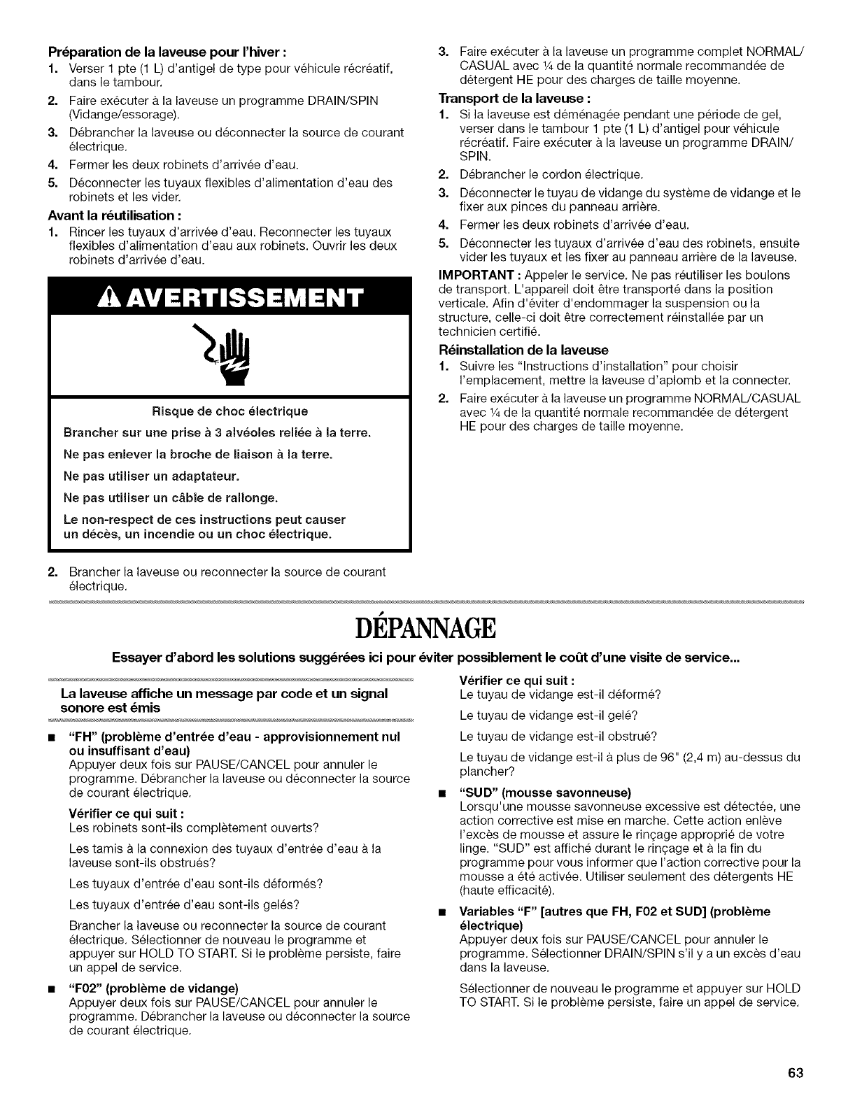 ou installation non conforme aux codes Iocaux d'electricite et de plomberie ou utilisation de produits non approuves par Whirlpool