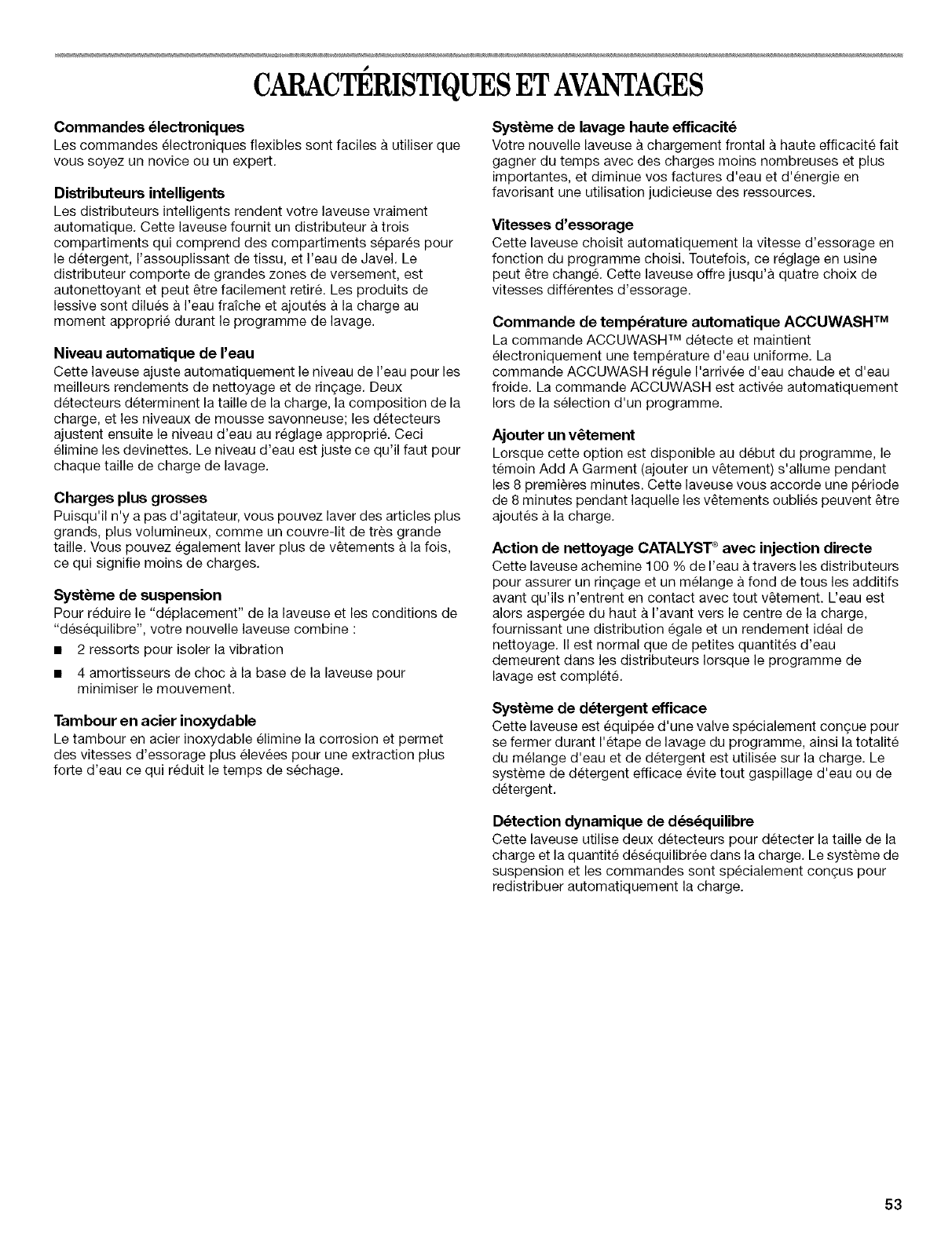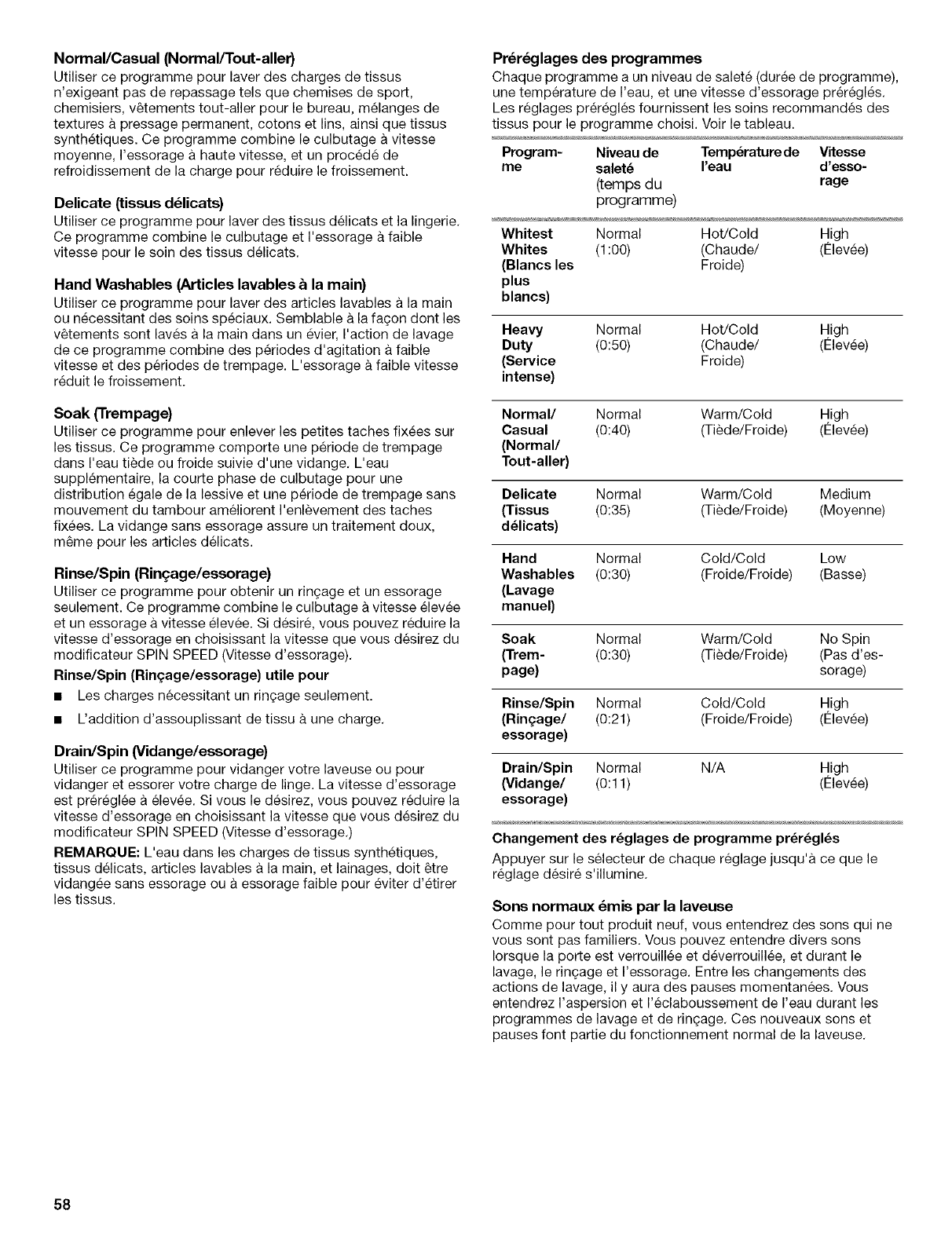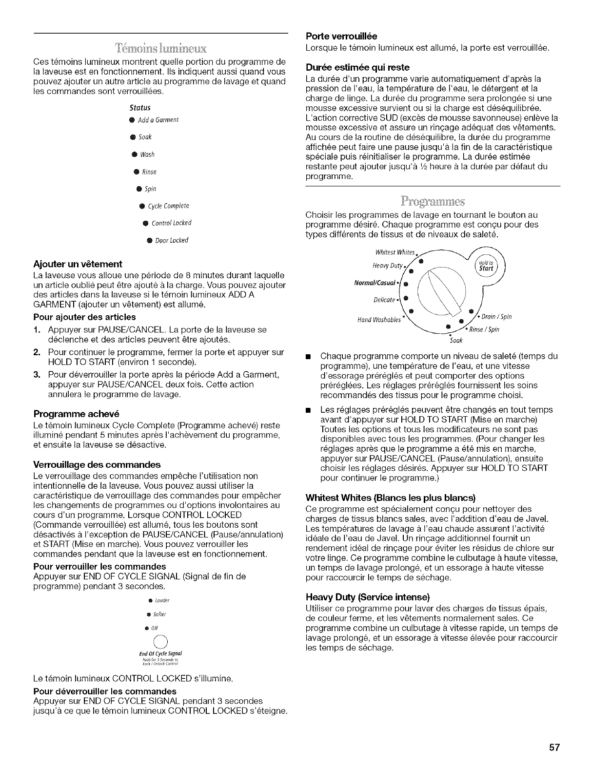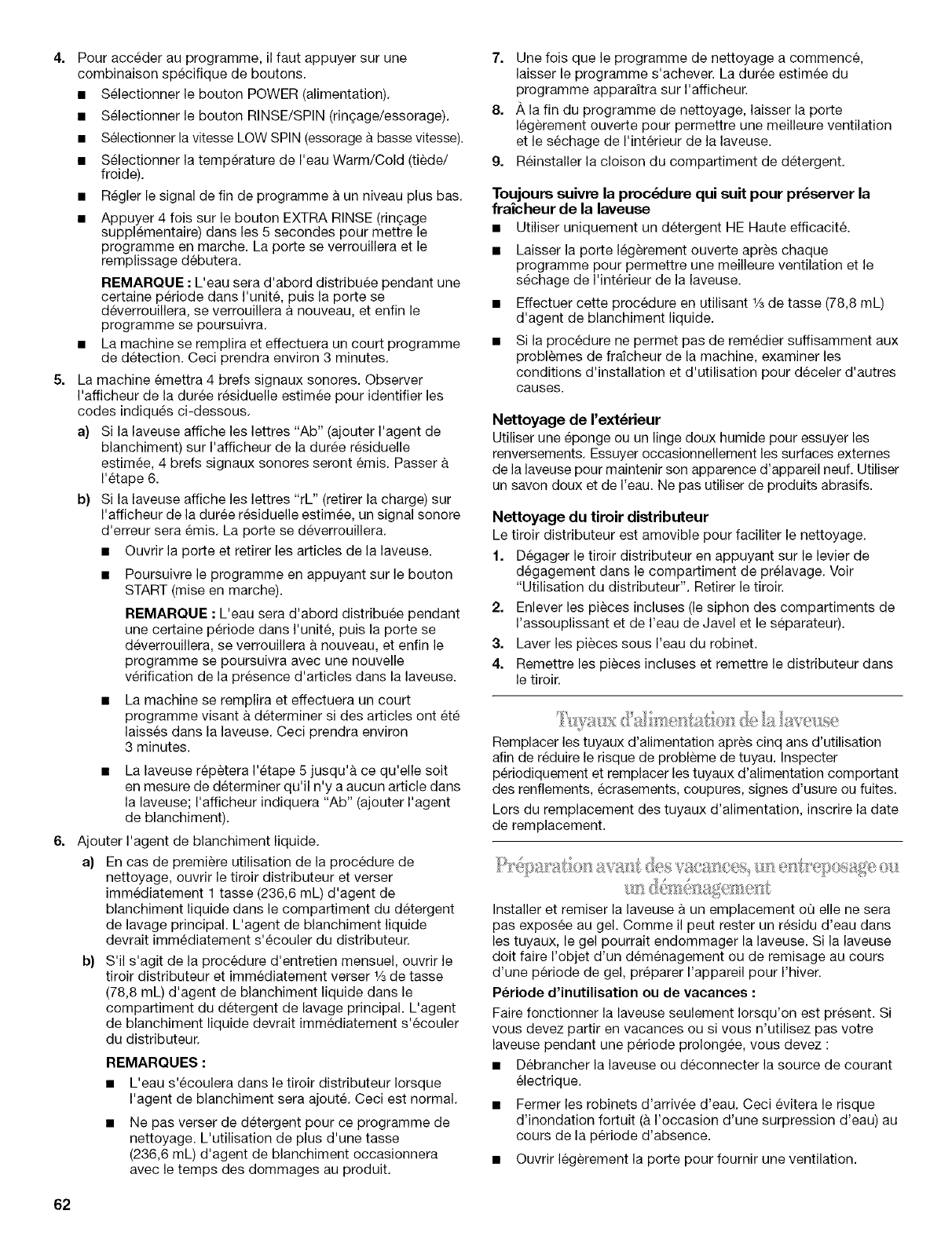 Pendant un an & compter de la date d'achat, Iorsque cette laveuse est utilisee et entretenue conformement aux instructions jointes a ou