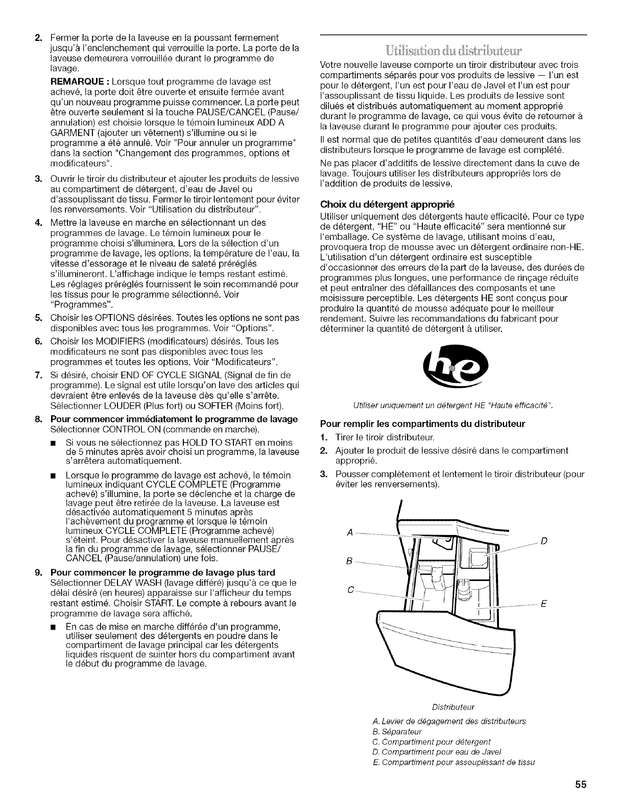 Pour la deuxieme annie a compter de la date d'achat, Iorsque cette laveuse est utilisee et entretenue conformement aux instructions
