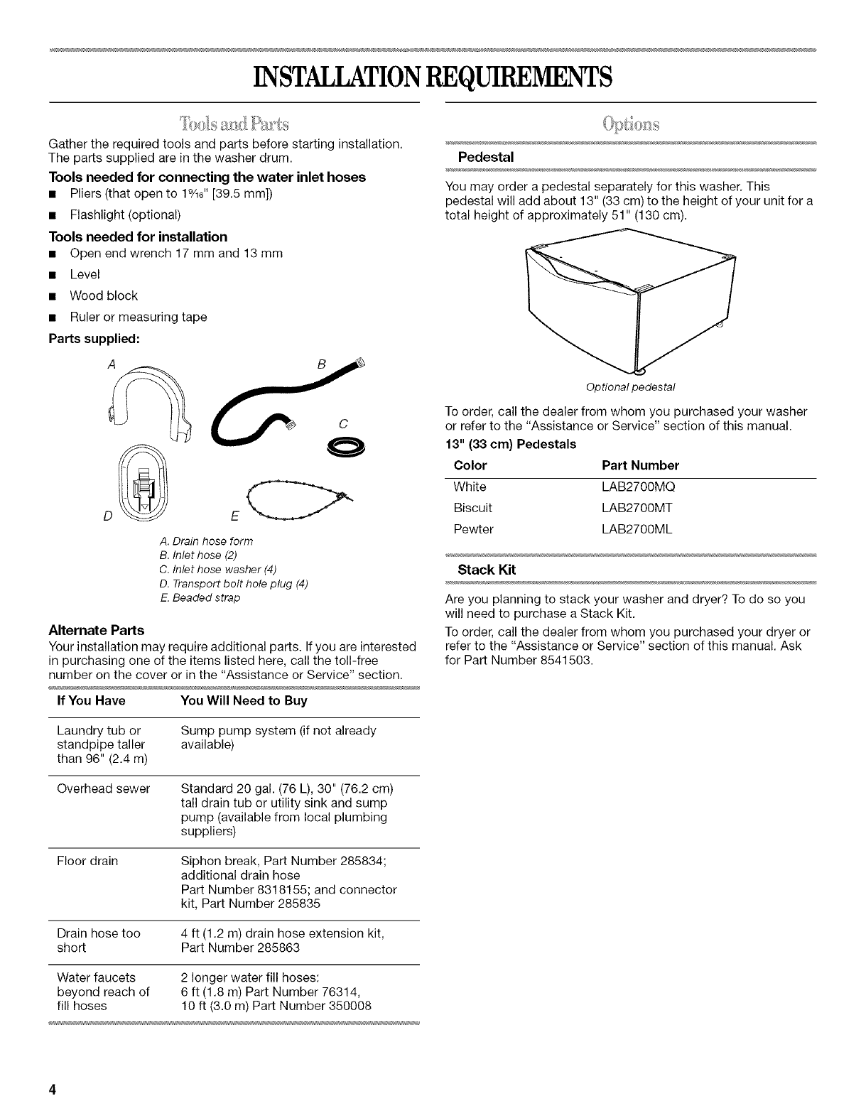 Water Inlet Hoses ....................................................................... 19