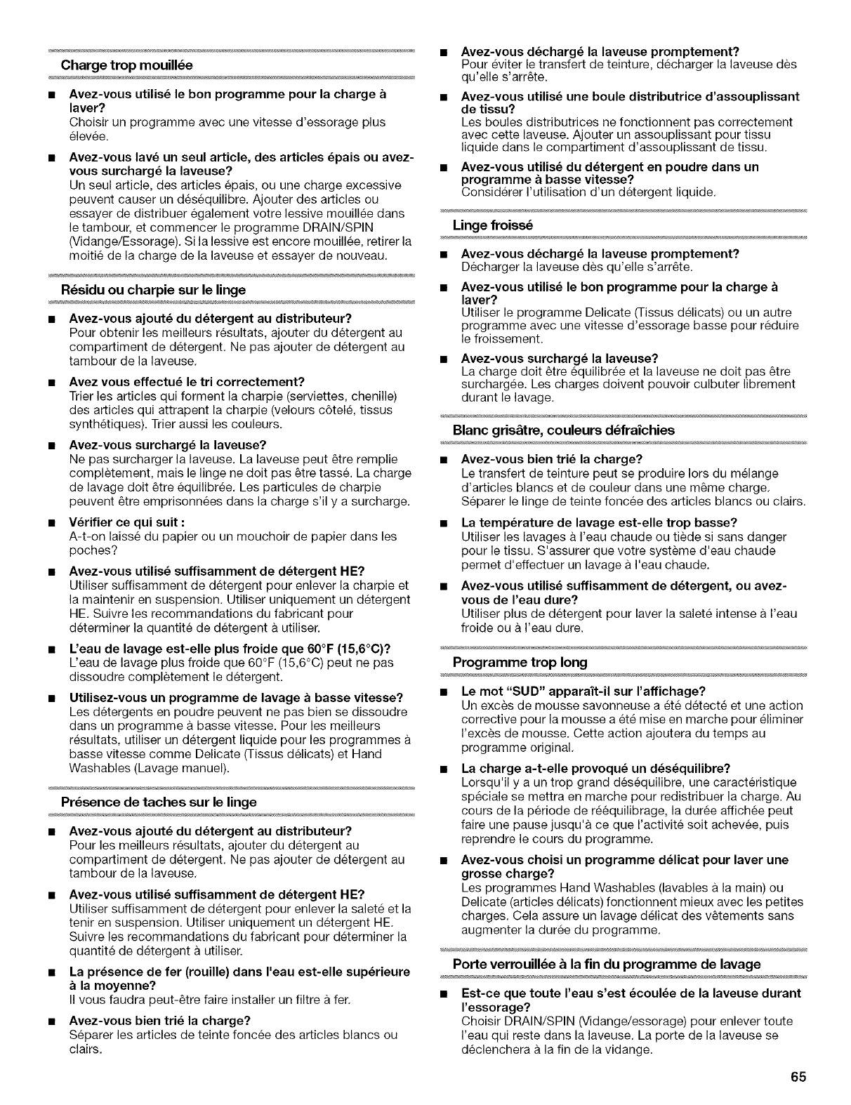2. Les reparations Iorsque la laveuse est utilis_e a des fins autres que I'usage unifamilial normal.