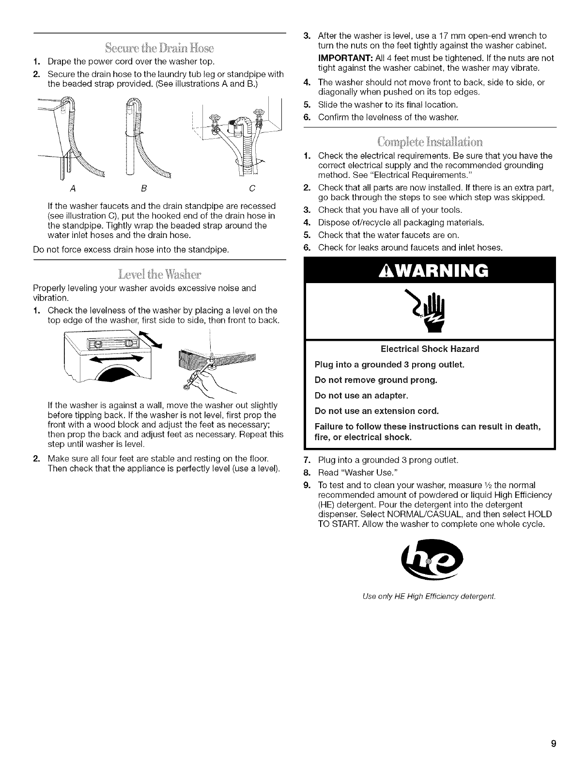 Level the Washer .......................................................................... 9