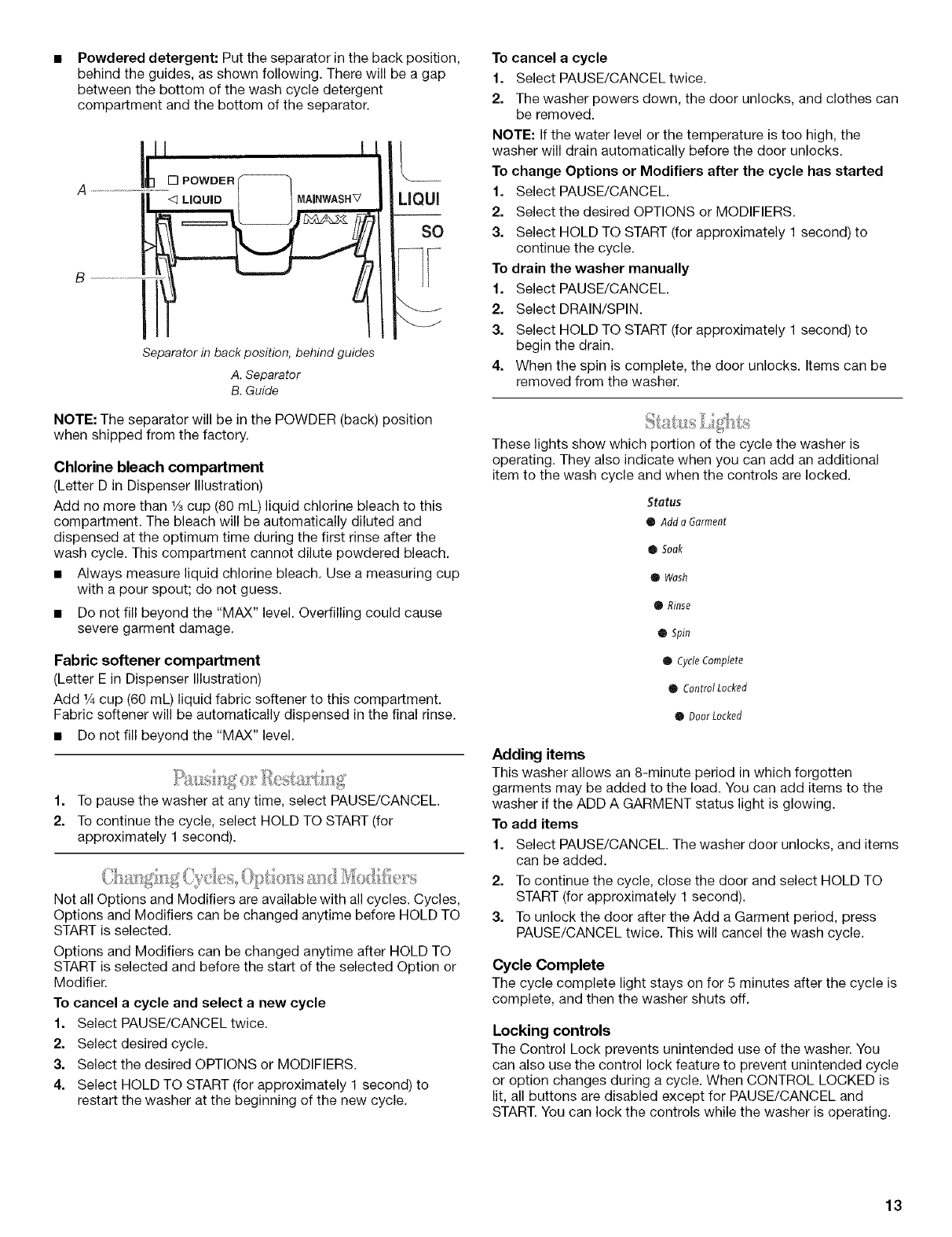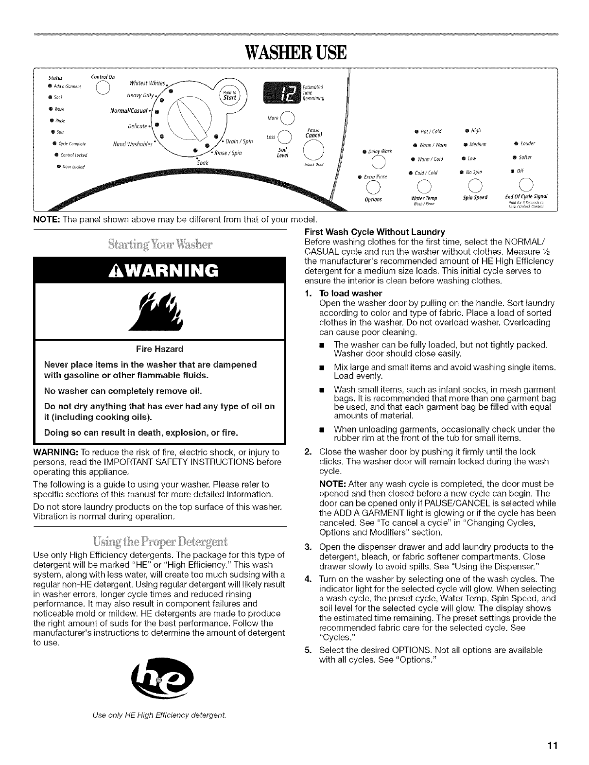 WASHER USE ............................................................................... 11