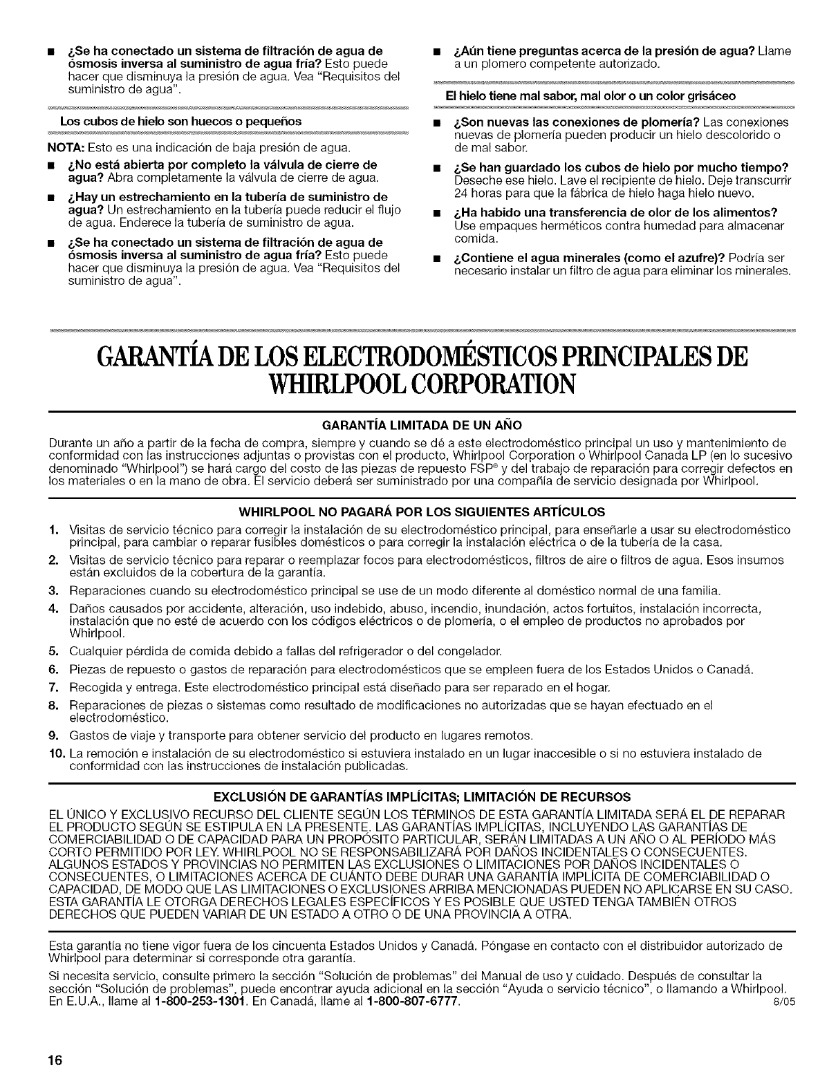 Todos los derechos reservados. ® Marca registrada/TM Marca de comercio de Whirlpool, EE.UU., usada bajo licencia en Canada de Whirlpool Canada Inc. Impreso en EE, UU.