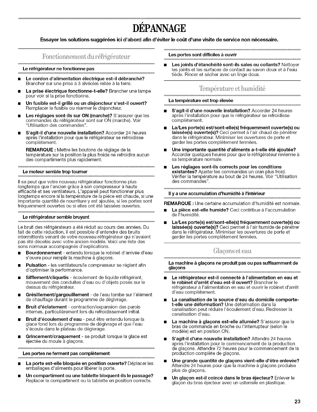 ".Depannage", de I'aide supplementaire peut _tre trouvee en verifiant la section "Assistance ou service" ou en appelant Whirlpool. Aux