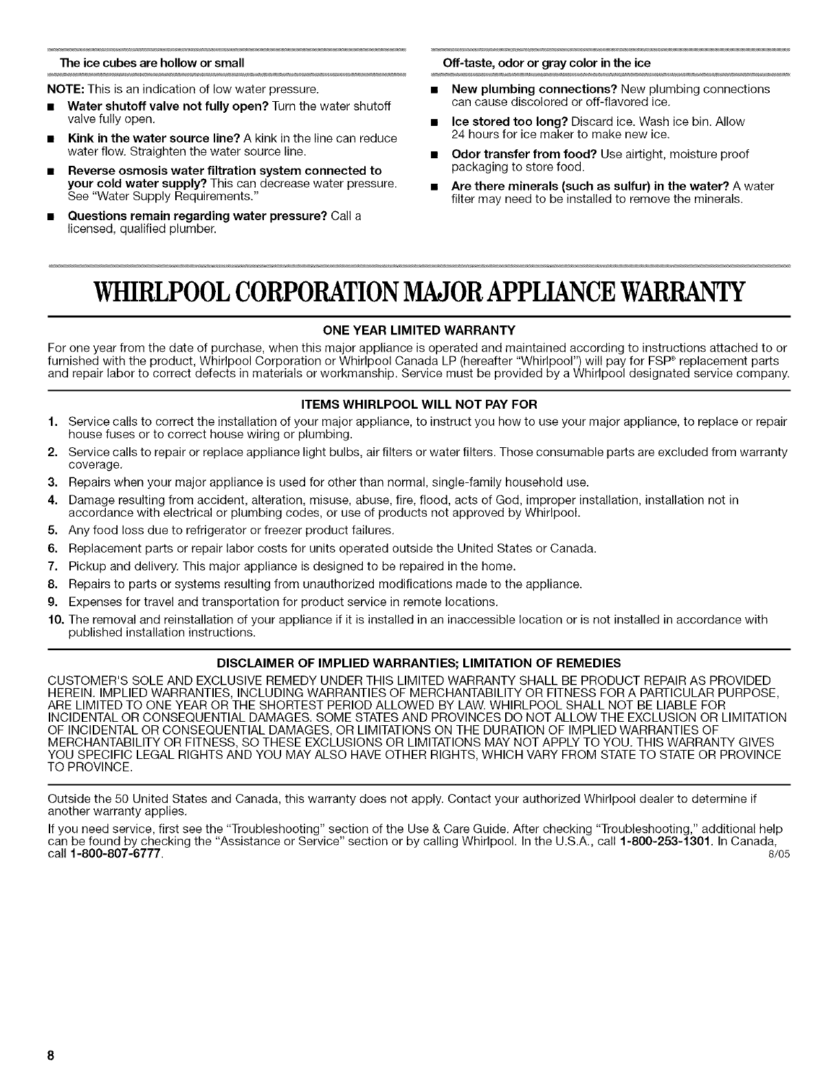 All rights reserved. ® Registered Trademark/TM Trademark of Whirlpool, U.S.A., Whirlpool Canada Inc. licensee in Canada Printed in U.S.A.