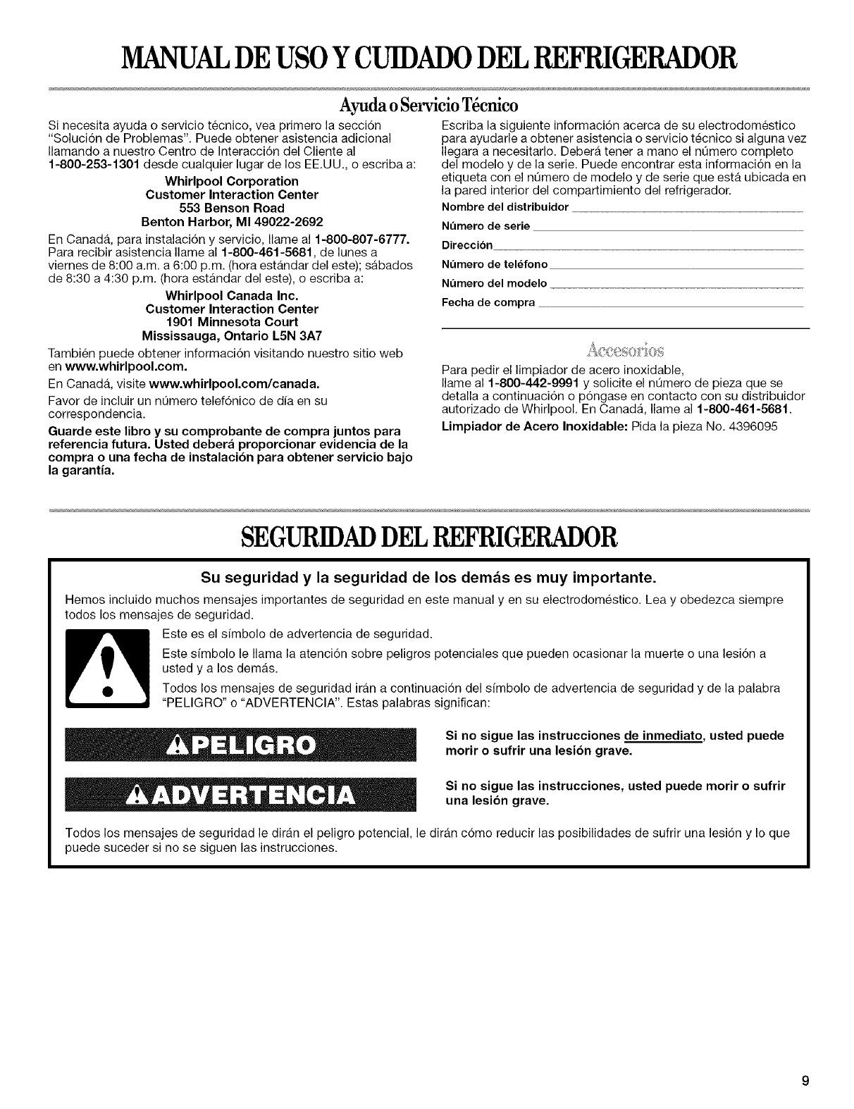 SEGURIDAD DEL REFRIGERADOR .............. 9