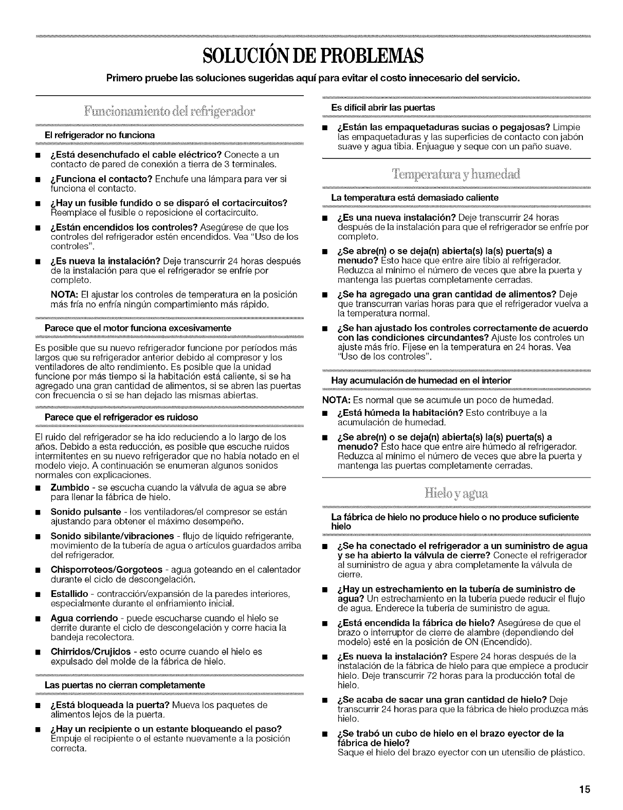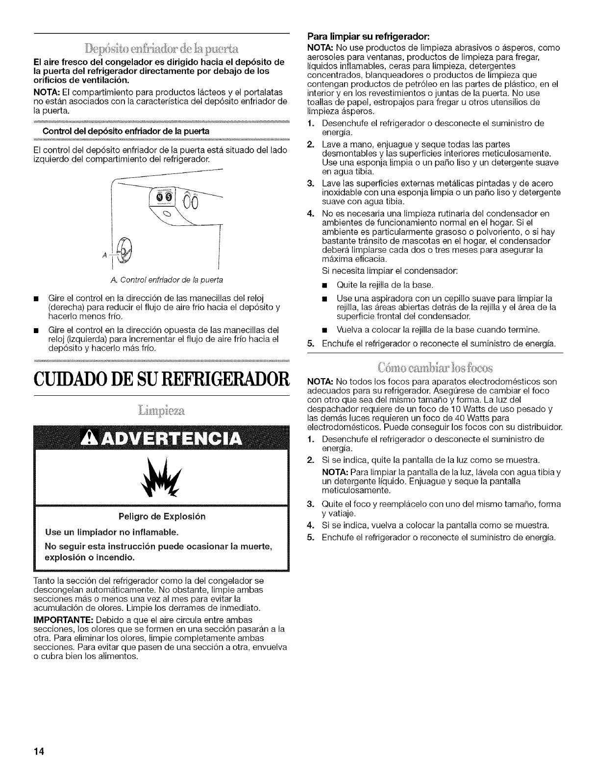 CUIDADO DE SU REFRIGERADOR ............. 14