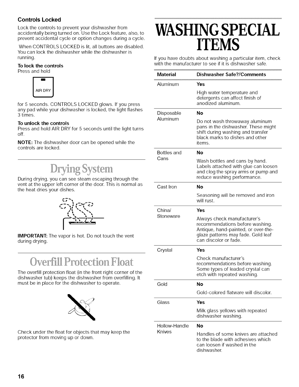 WASHING SPECIAL ITEMS ............................................. 16