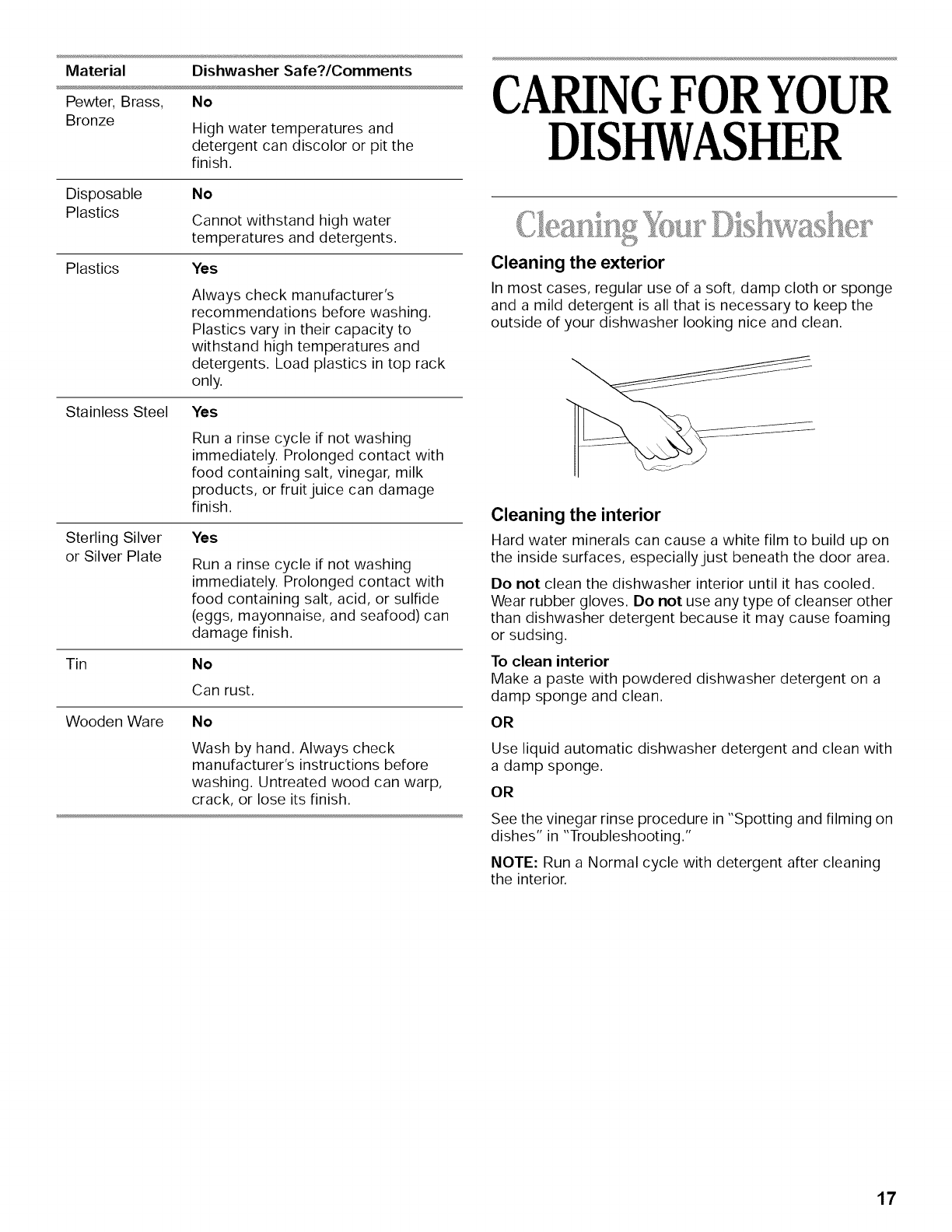 CARING FOR YOUR DISHWASHER ............................... 17