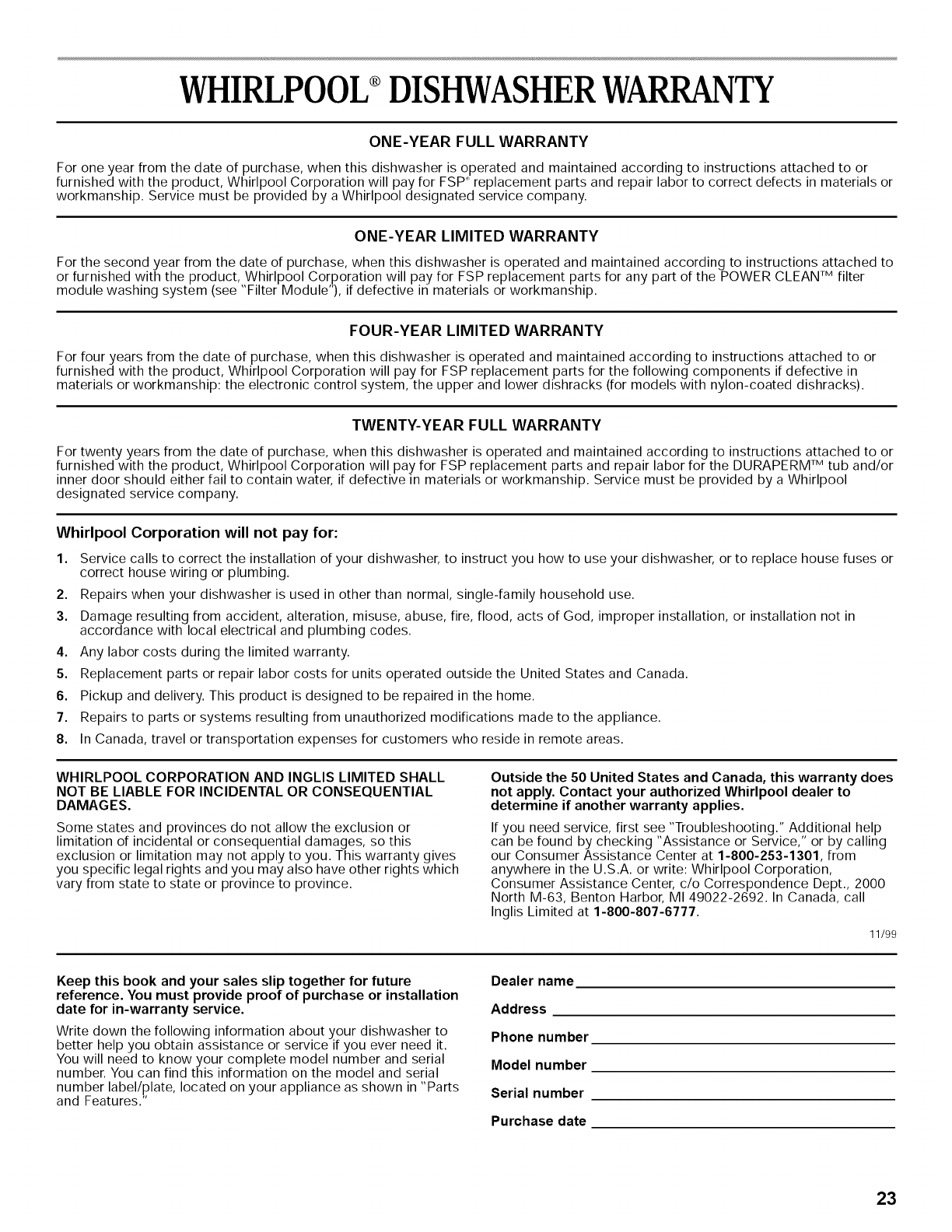telephoner a Inglis Limitee au 1-800-807-6777. 12/99