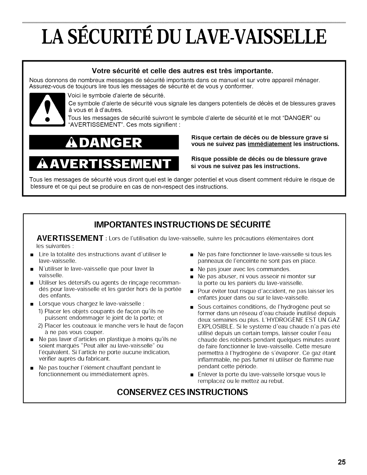 LA SECURITE DU LAVE-VAISSELLE .............................. 25