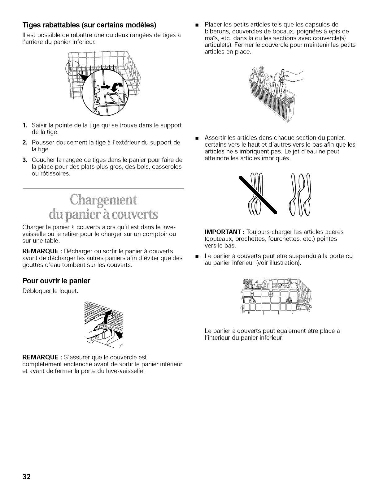 Chargement du panier a couverts ................................ 32