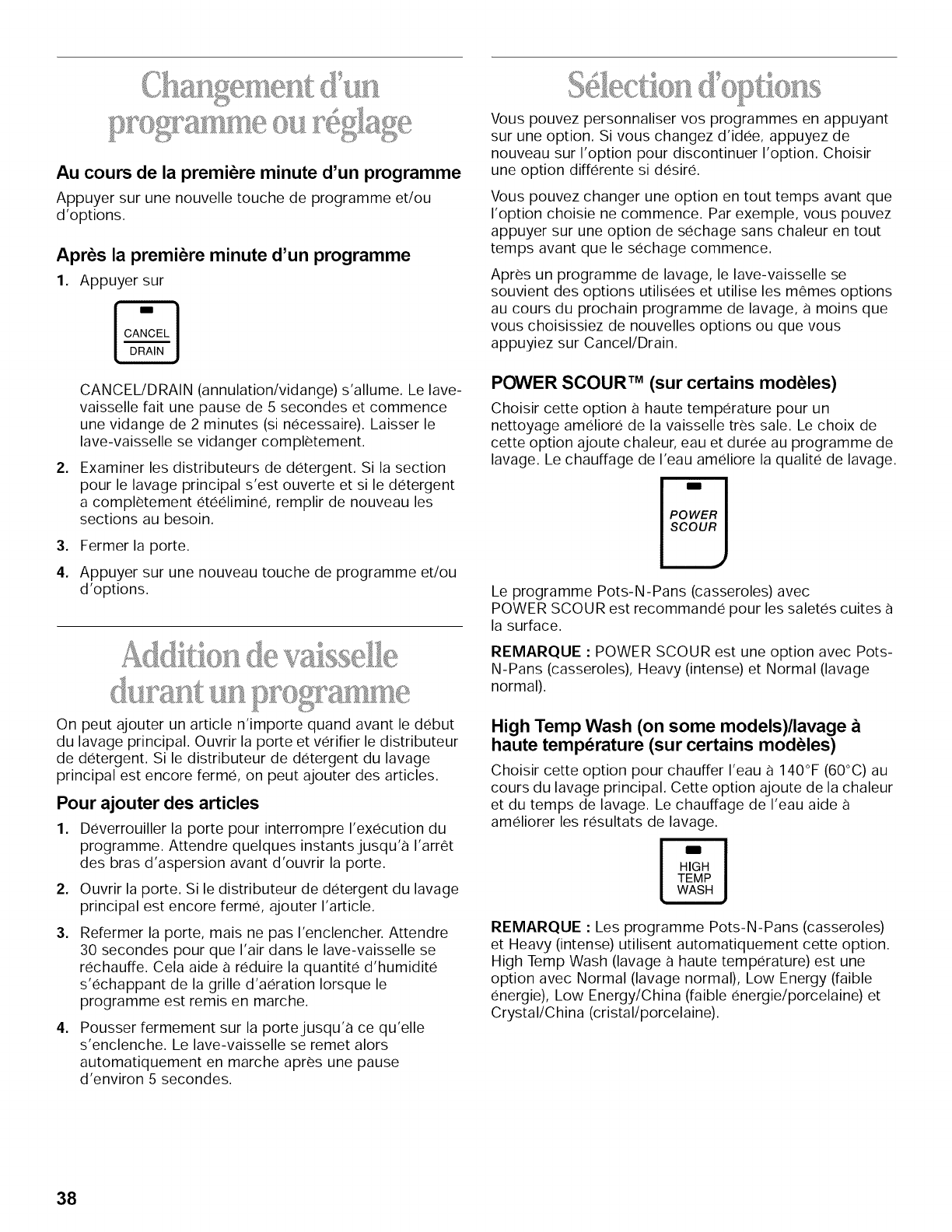 Addition de vaisselle durant un programme ................ 38