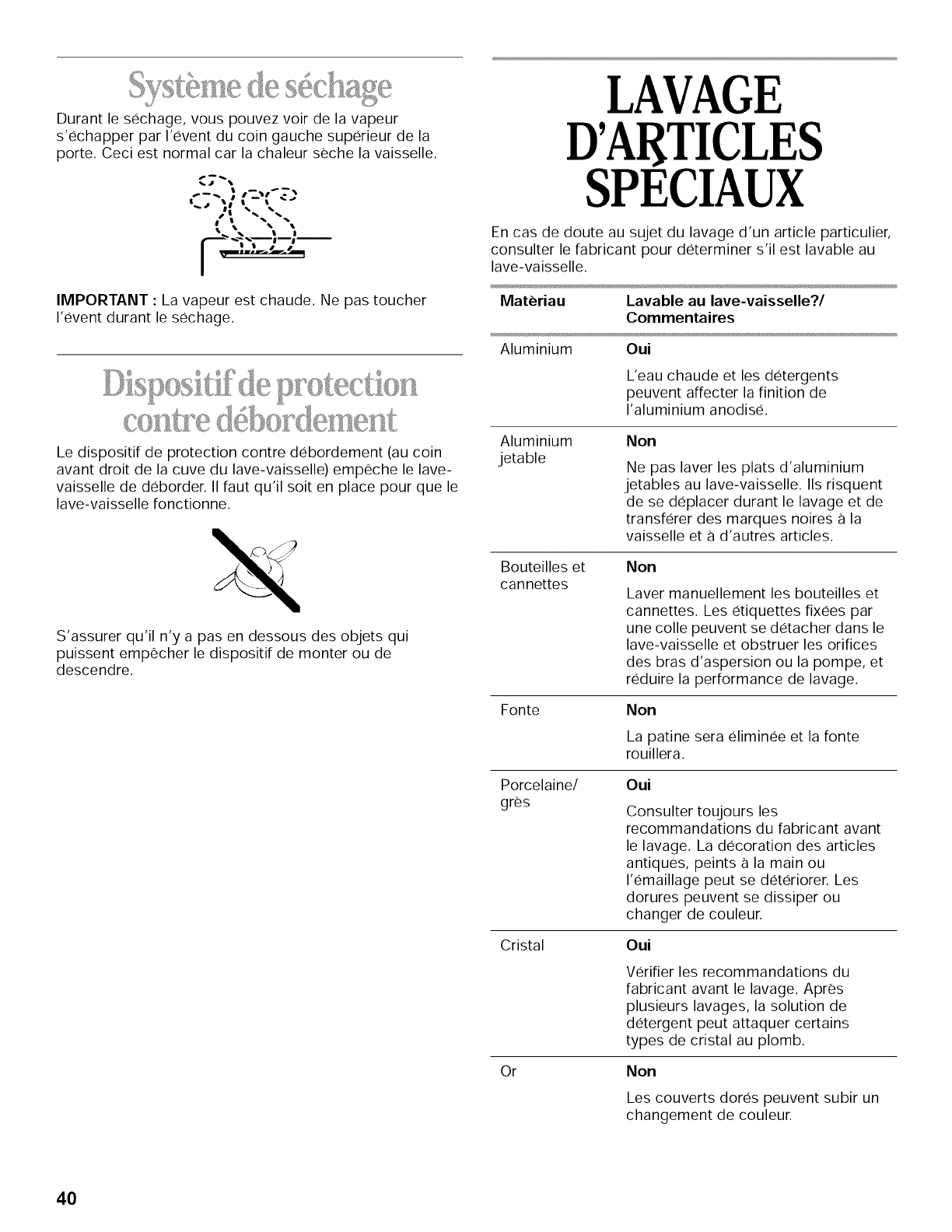 LAVAGE D'ARTICLES SPEClAUX ................................... 40