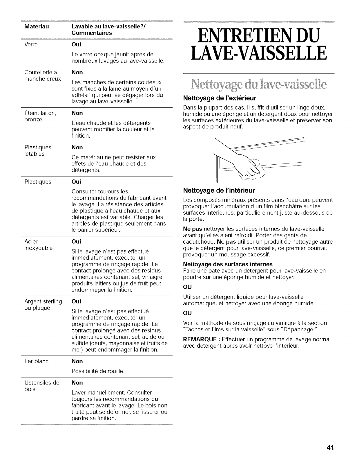 Nettoyage du lave-vaisselle .......................................... 41