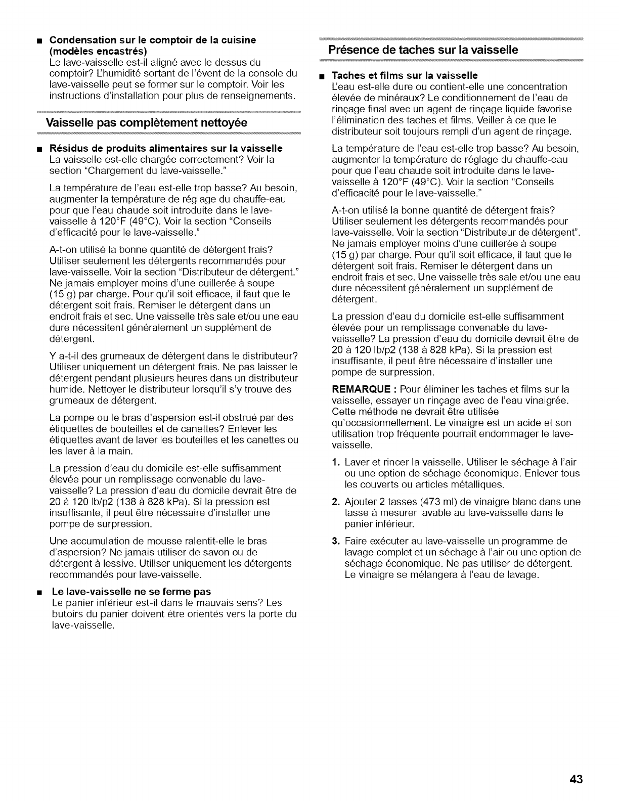vaisselle, remplacer les fusibles ou rectifier rinstallation electrique ou de plomberie du domicile.