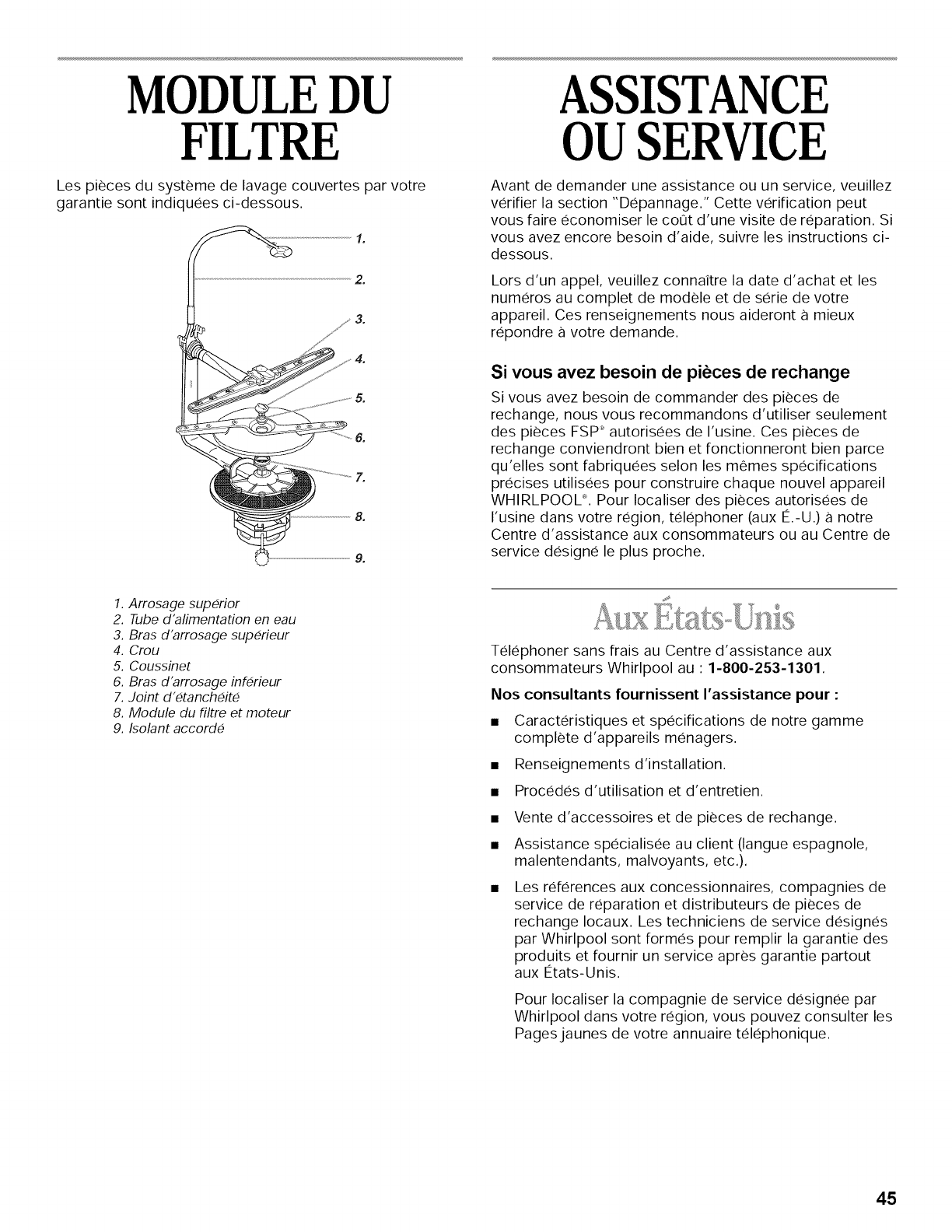 section "Assistance ou Service," ou en telephonant a notre