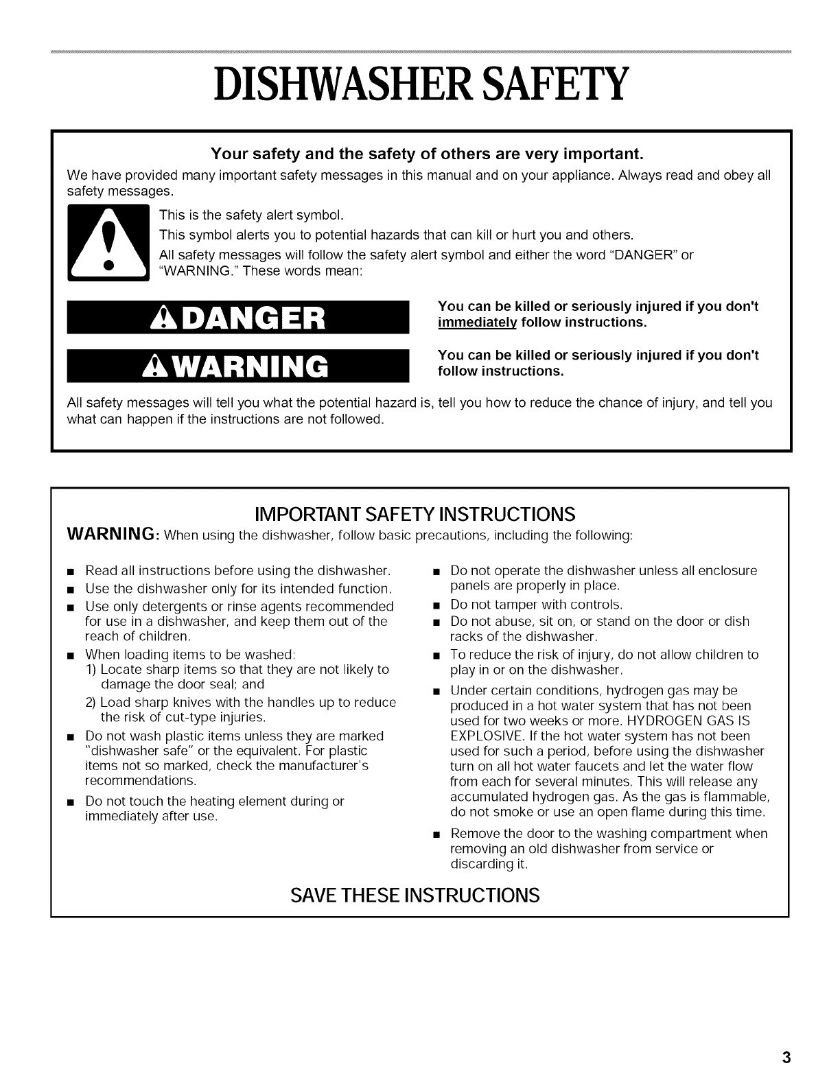 DISHWASHER SAFETY ...................................................... 3