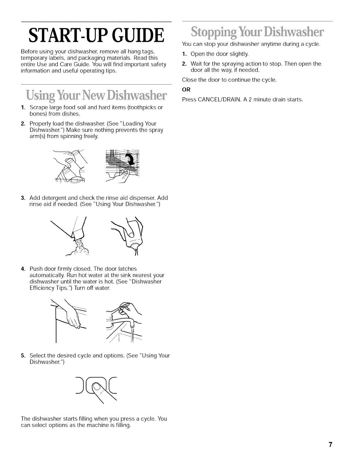Stopping Your Dishwasher .............................................. 7