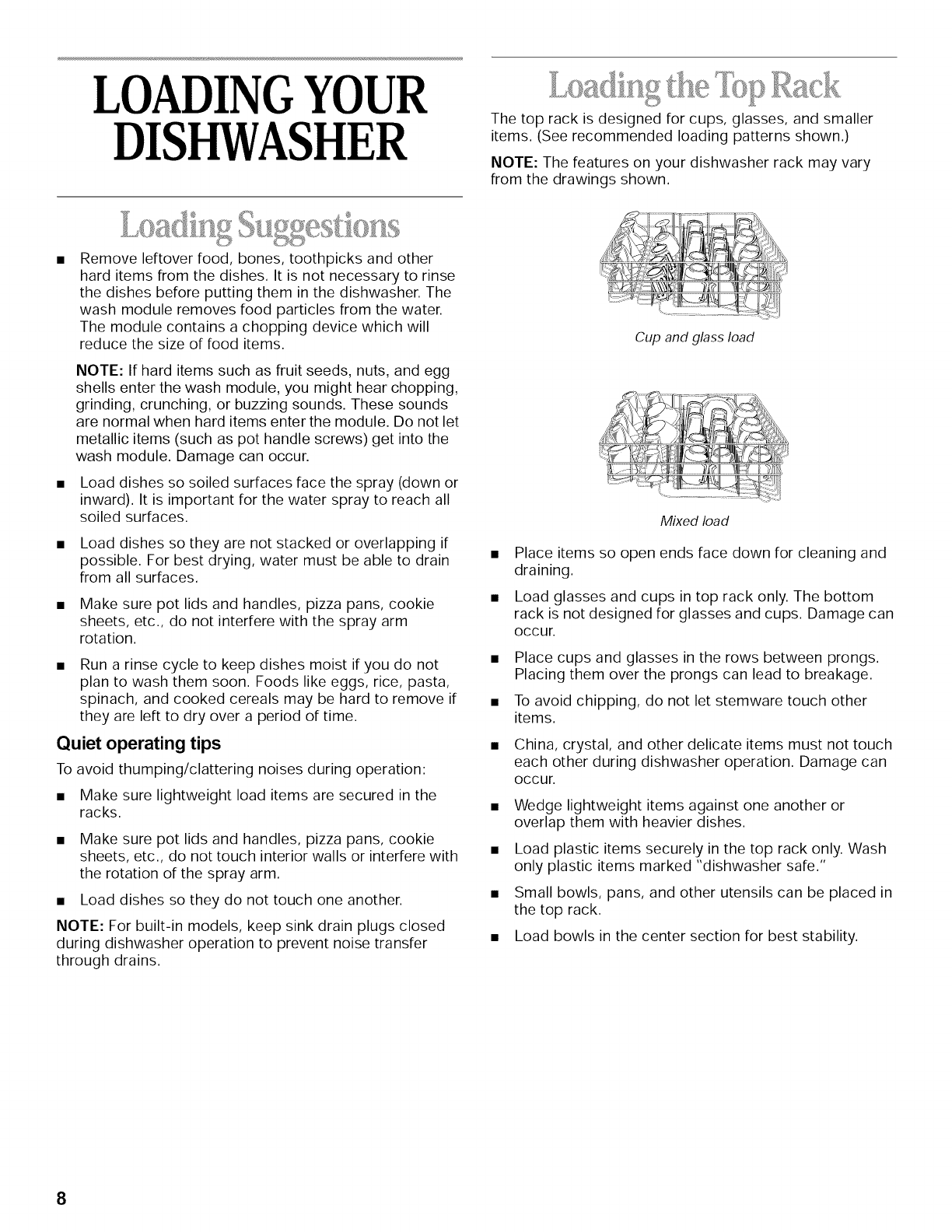 LOADING YOUR DISHWASHER ....................................... 8